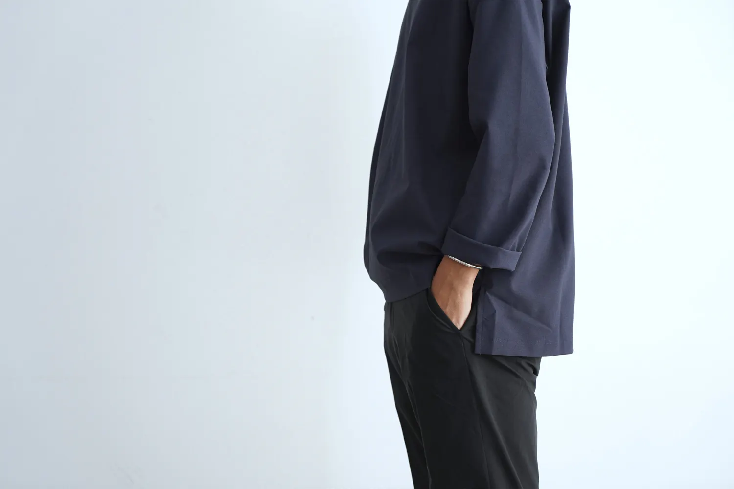 「ミニマリストのための、ミニマルなプルオーバーシャツ(長袖/ネイビー)」