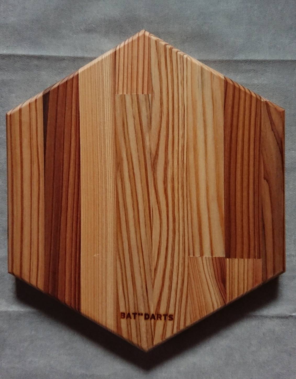 お店で使う「BAT DARTS」と焼き印が入った木製の六角木皿です。