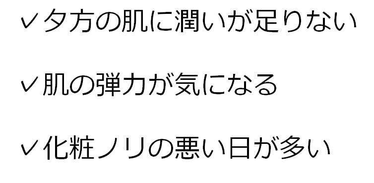 夜のスキンケアにて睡眠中の肌を守ります。翌朝の洗顔では、凸凹のない、しっとり潤いを感じる肌へと導きます。日々の化粧ノリにも影響します。