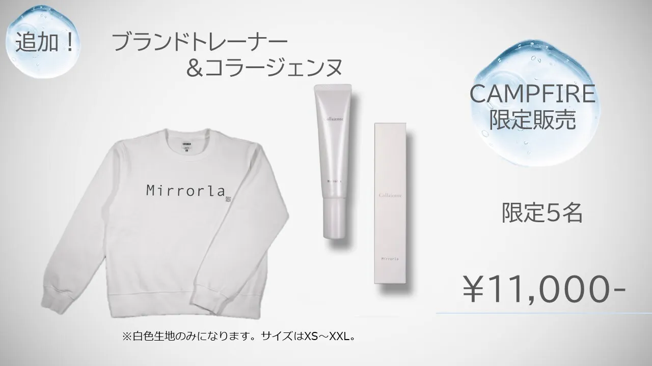 また、CAMPFIRE限定で、ブランドトレーナーとコラージェンヌをセットにしたリターンもご用意いたしました。