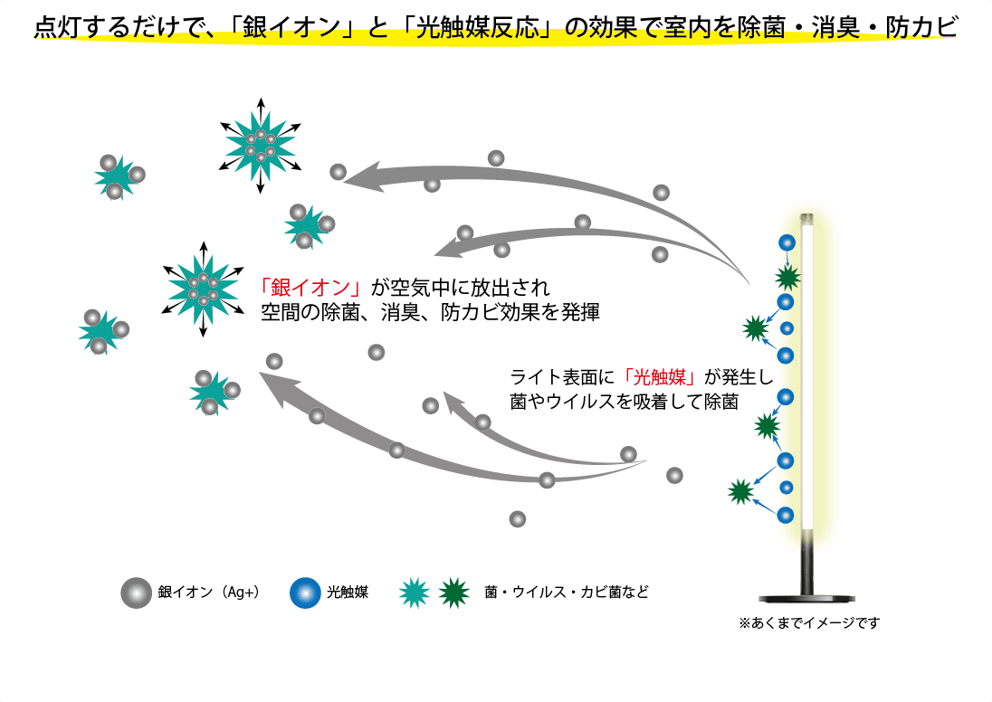 ライトを点灯するだけで除菌・消臭・防カビ効果を発揮する空気清浄除菌型ライト