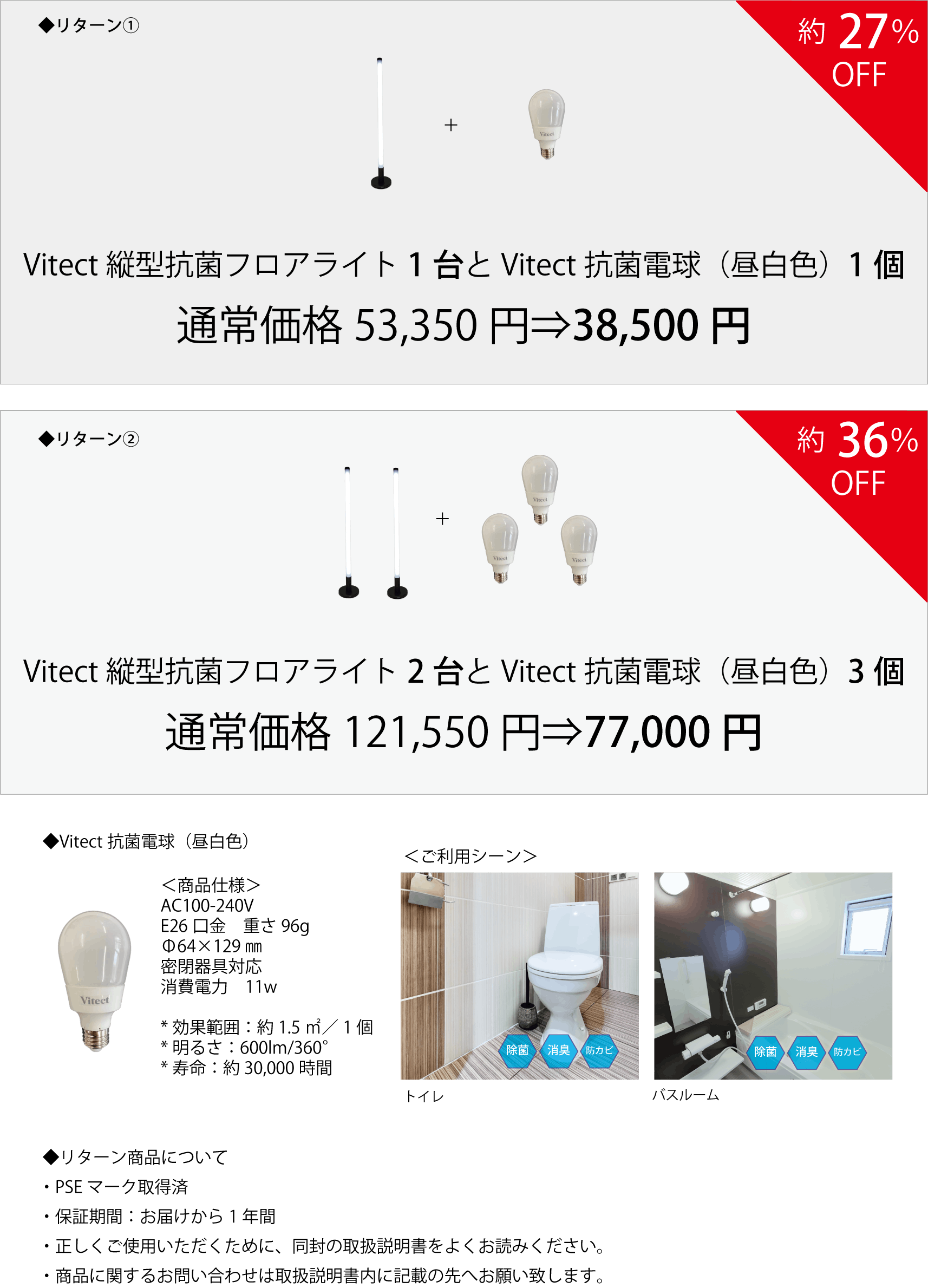 既に多くの病院、高齢者向け施設、保育園、ホテルなどでご利用いただき、好評をいただいている抗菌ライト(蛍光灯形、電球形)商品を、この度、ご家庭用に開発、販売をすることになりました。