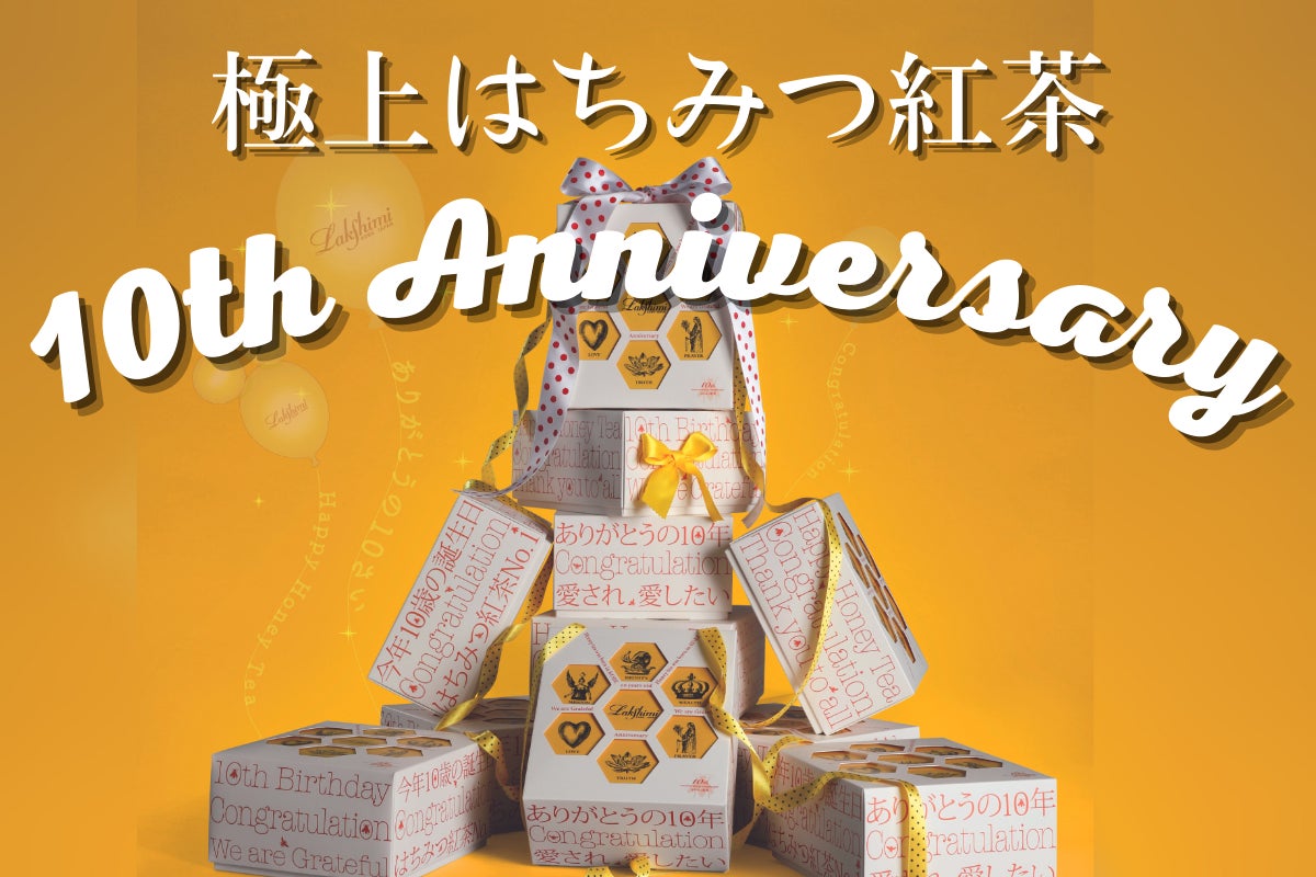 自慢のはちみつ紅茶の香りと味わいを様々なシーンで楽しんでいただけるようバラエティ豊かにご用意しました。ラクシュミー10周年の特別記念感謝の気持ちを込めて癒しの時間をお届けしたいと思います。毎日のほっこり時間、温かな団らん、人とつながる特別な時間をお楽しみ頂けたら幸いです。