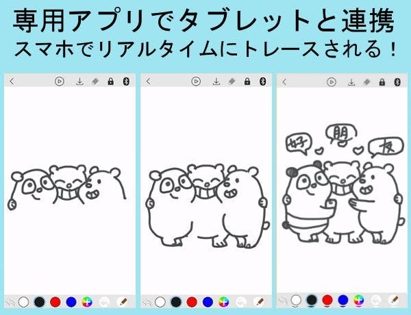 ■ タブレットで書くメモやイラストがリアルタイムでスマホにも描写されていきます。