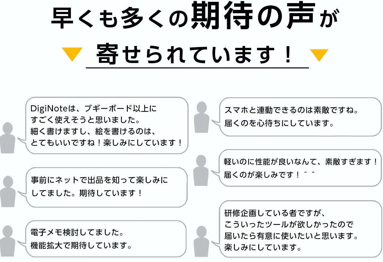 2023/12/09 12:00お世話になっております。MKトレードです。 本日、『T-Note2』を公開させていただきました! 大変反響をいただいた初期モデル『T-Note』発表から2年が経ちました。充電ポートが待望のType-Cとなりました。 今回もツバメノート社推奨デジダル文具として、ツバメモA5(方眼)が付属します。 ★新商品『T-Note2』https://camp-fire.jp/projects/view/719281『T-Note2』は、メモ帳やノートに書くようにパソコンやスマホに書き写すことができます。①手書きメモをリアルタイムで「デジタル化」②パソコン上に「手書き」で同時表示出来、オンライン会議にも使用できる!③専用スマホアプリで同時描写もできる!④「ツバメノート」の『ツバメモA5』を付属!書きやすいフールス紙⑤「スタイラスペン先」を使って紙を節約! お得なリターンは「数量限定」となります。 この商品をもっと多くに方々に知っていただきたいと思っておりますので、SNSなどでのシェアなど大歓迎です! ぜひお見逃しなく、ご検討をどうぞ宜しくお願いいたします! ---------------------------------------------------■リピーター様向けキャンペーン■今回のプロジェクト『T-Note2』をご支援いただいたリピーター様に対して「先着50名様 オリジナルポケットメモ帳プレゼント」いたします!★応募方法★今回のプロジェクト『T-Note2』をご支援のうえ、「メッセージを送る」より下記を記載してご応募ください。・過去にご支援くださった弊社プロジェクトの商品名・過去支援ID・氏名--------------------------------------------------- 最後まで、どうぞよろしくお願いいたします。https://camp-fire.jp/projects/view/719281 『T-Note2』プロジェクトスタッフ一同************************************************************★同時開催中プロジェクト 『DigiNotePro3』画期的な電子タブレットhttps://camp-fire.jp/projects/view/717657 ++++++++++++++++++++++++++++++++『LetSketch』300dpi小型サーマルプリンターhttps://camp-fire.jp/projects/view/681331追加購入などに便利な「MKTrade限定公開ショップ」もぜひご覧ください♪https://mktrade2.official.ec/ もっと見る