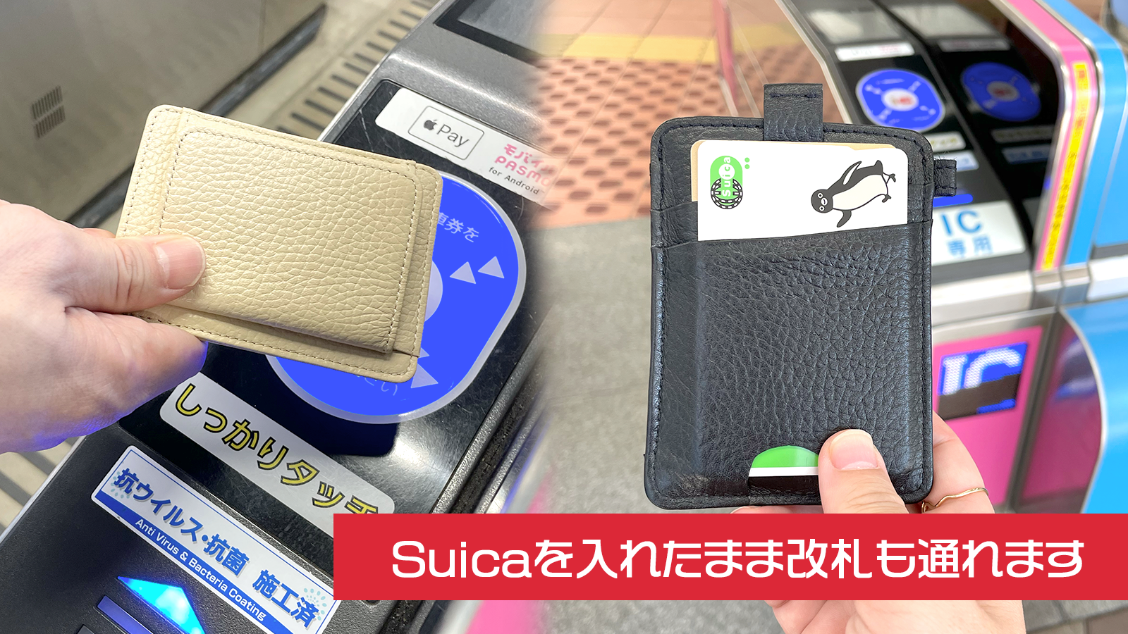外側のカードポケットにSuicaやタッチ決済対応のクレジットカードを入れておけば、カードを取り出す必要はありません。