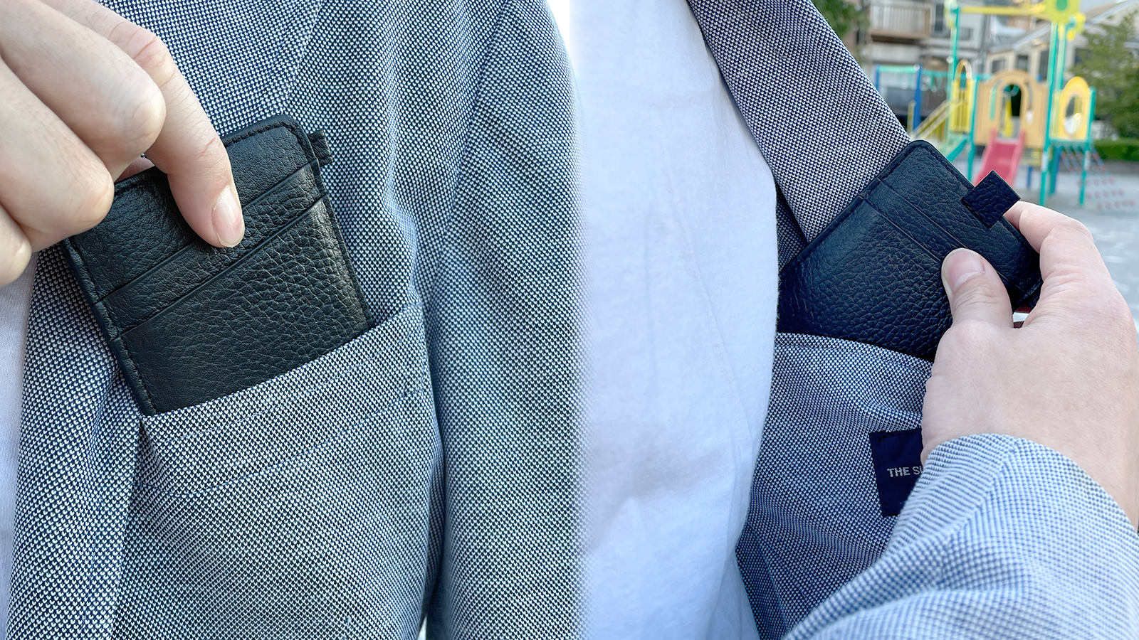 スーツの内ポケットやパンツのポケットに入れてもかさばらず邪魔にならないサイズを実現しました。