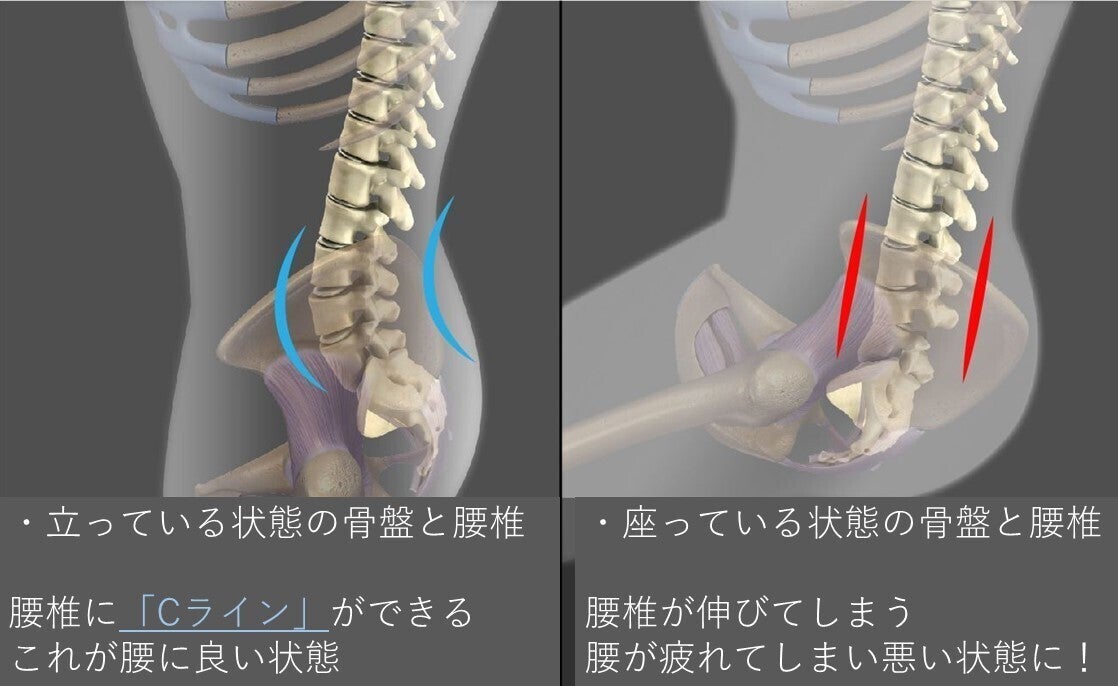 腰の健康の要は座面にあります。「骨盤後方回旋」にならないように骨盤を支えてください!!