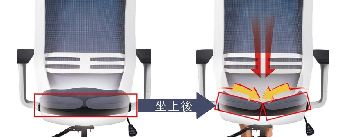 お尻に均等に圧力が分散!椅子との接触面積を減らして