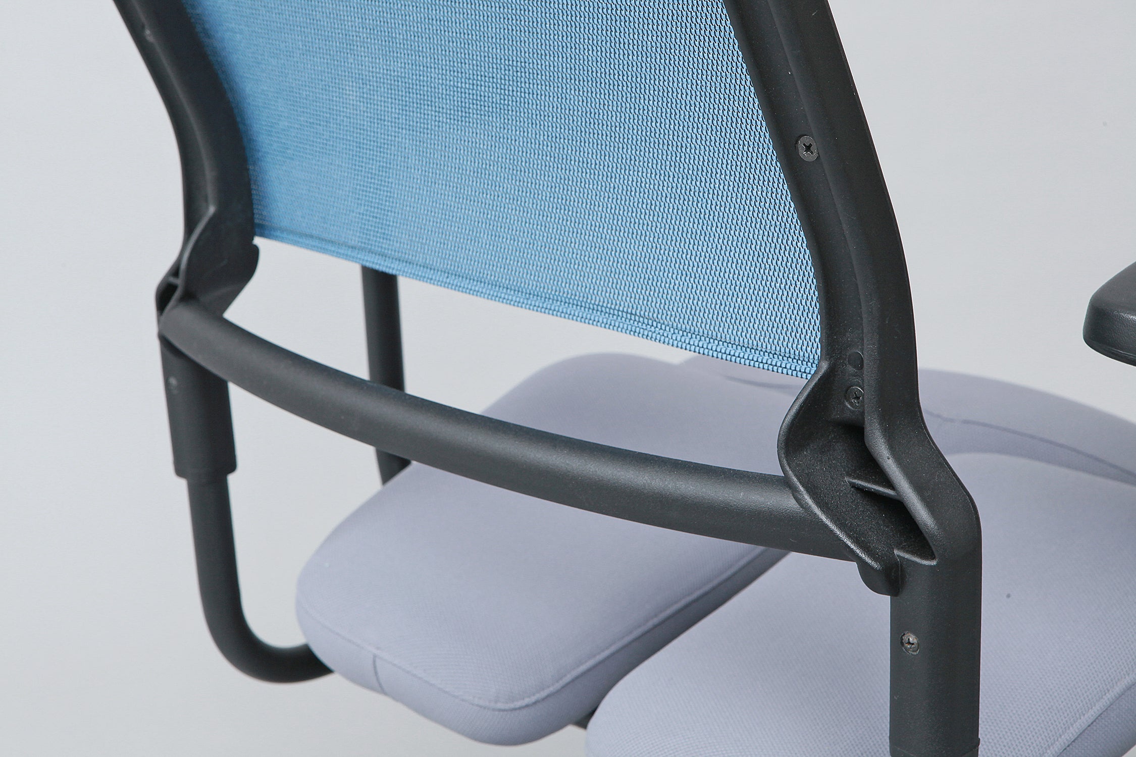 Knowbody Chair K-35の背もたれはPolyelastomericメッシュ生地で製作しました。長い時間使用すると、すぐにたるみが増えるローエンドメッシュ生地とは異なり、特有の弾性力で復元力に優れています。
