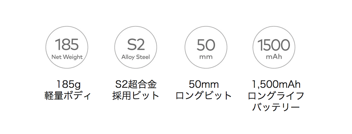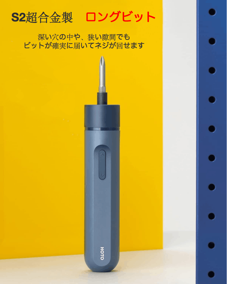 普通の電動ドライバーよりも長い、50mmのビットを採用しているので、