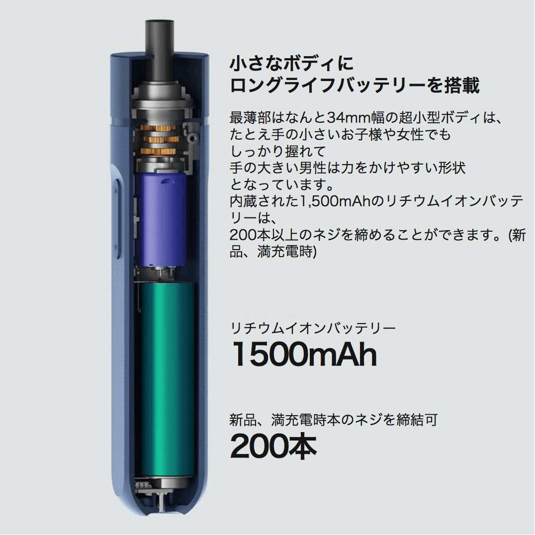 A:1500mAhで、満充電時から使用すると200本ネジを締結可能です。