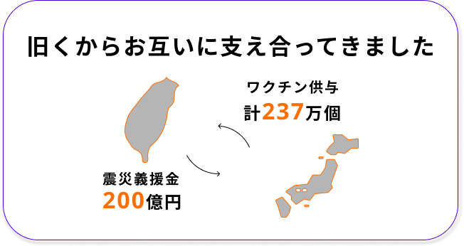 ご存知のように、旧くから日本と台湾は親交があります。過去を振り返っても、どちらか一方が大変な時は、支え合ってきました。「日本加油」のメッセージとともに台湾から防護服やマスクが届けられたことでその関係性の深さを知った方も多いのではないでしょうか。