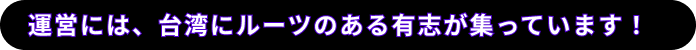 「台湾と神戸の架け橋に」をコンセプトに、以前より日本と親交深い台湾をより多くの人に知っていただく機会として、神戸に住む台湾にルーツをもつ有志が企画・運営しています。