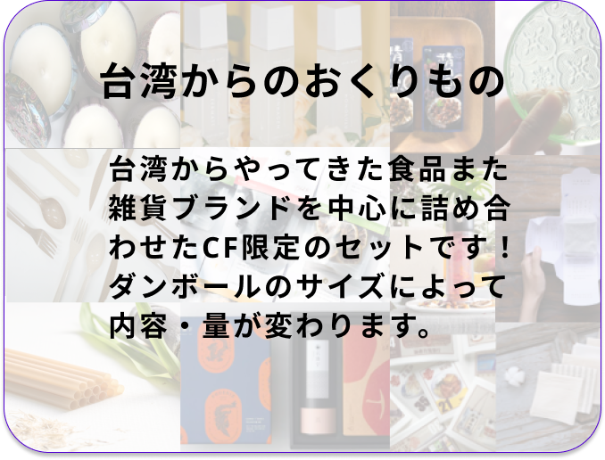日本に来たくてうずうずしている台湾ブランドを、手に入れることができる詰め合わせセット。送付サイズにより、2,000~4,000円分の食品・雑貨を詰め合わせてお届けいたします!
