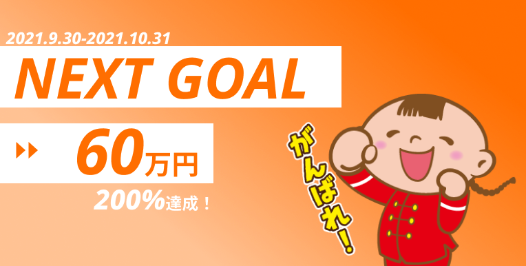 本当にありがとうございます。。10月31日までのラストスパート、次の目標として60万円達成に向けて走り切ります!