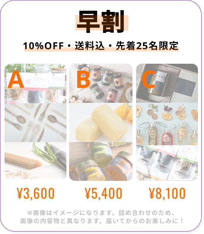 ●引渡時期: 各リターン詳細に記載の発送予定月を引き渡し時期とします。但し、リターンによっては輸配送・在庫状況によって遅れが生じる場合がありますので、その際は当プロジェクトページ内の「活動報告」または購入者へのメール等で連絡します。