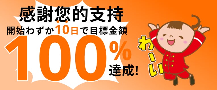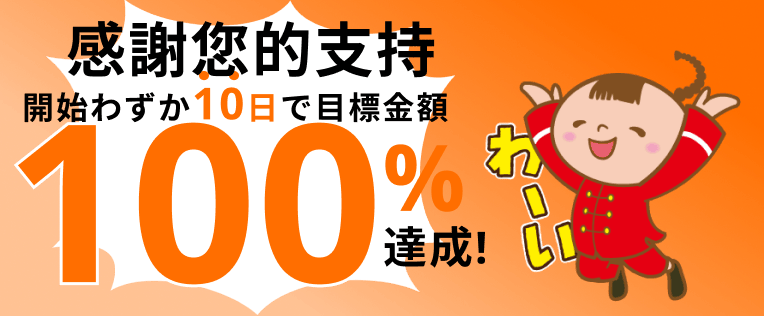 公開してからわずか10日足らずで、目標金額の100%を達成することができました!