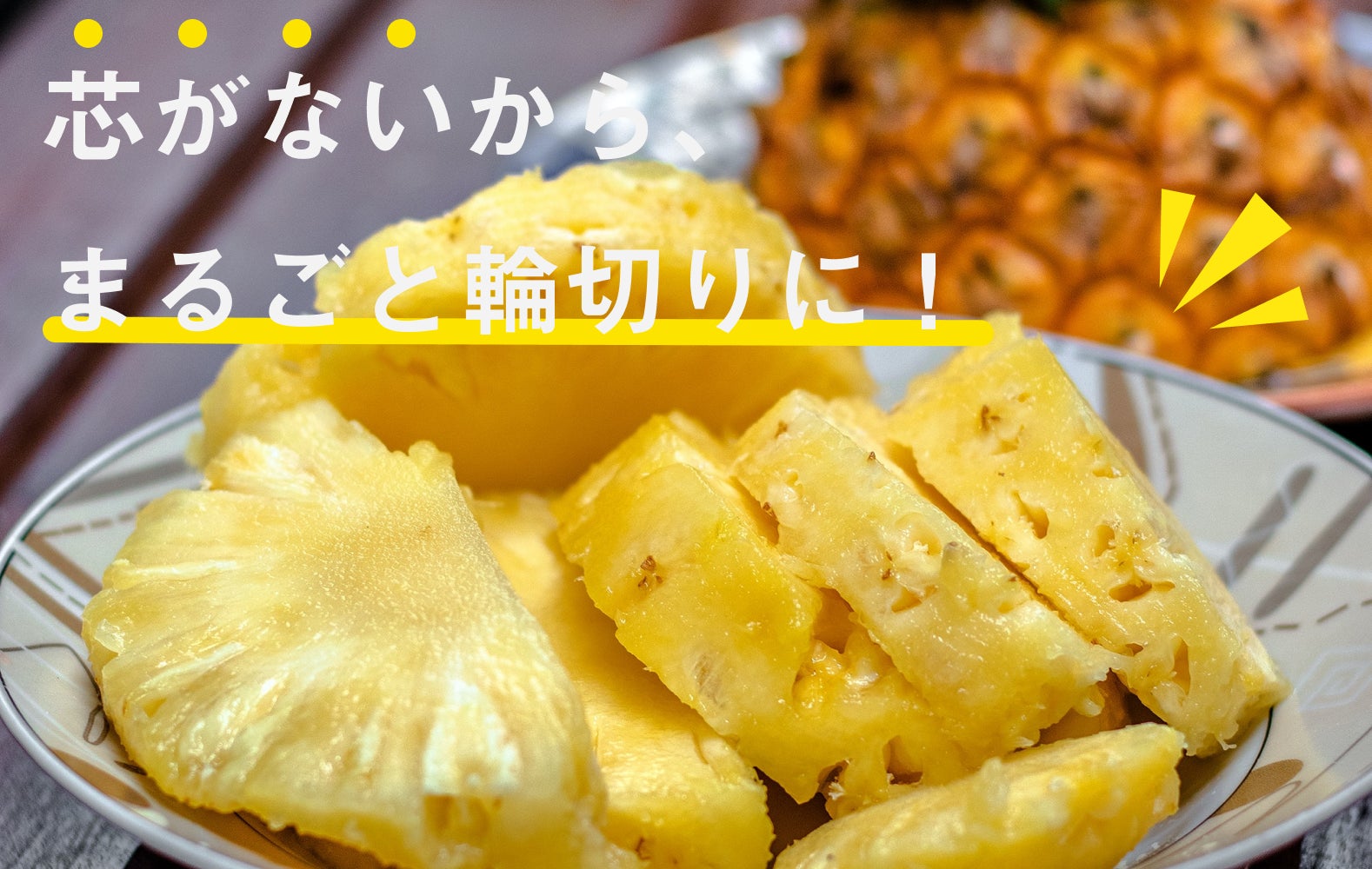芯まで食べられるパイナップルは、金鑚パインだけ!
