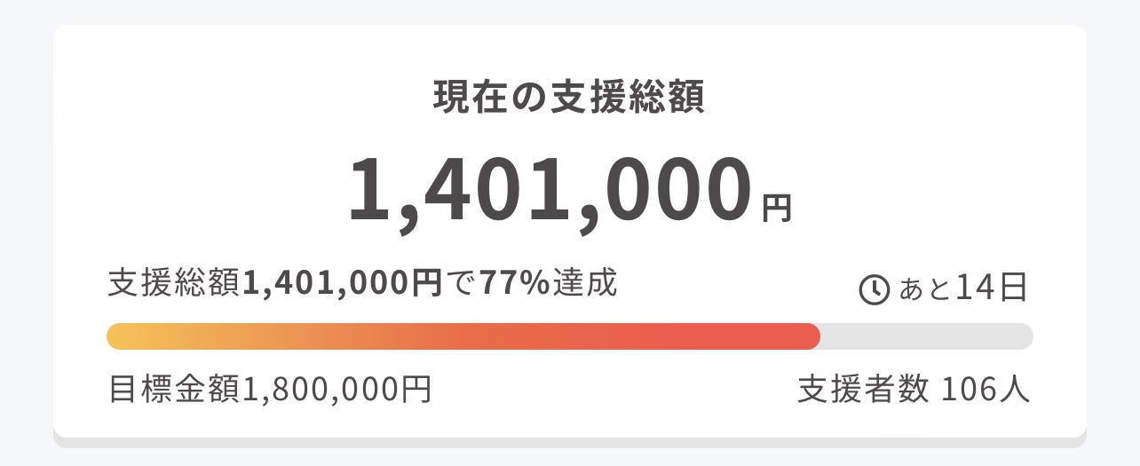 既に皆様には継続してサポート頂いておりますが、プロジェクトの成功、目標金額の達成、さらなる資金調達のため、ぜひプロジェクトをご友人やSNSにてシェアいただけますと幸いです。