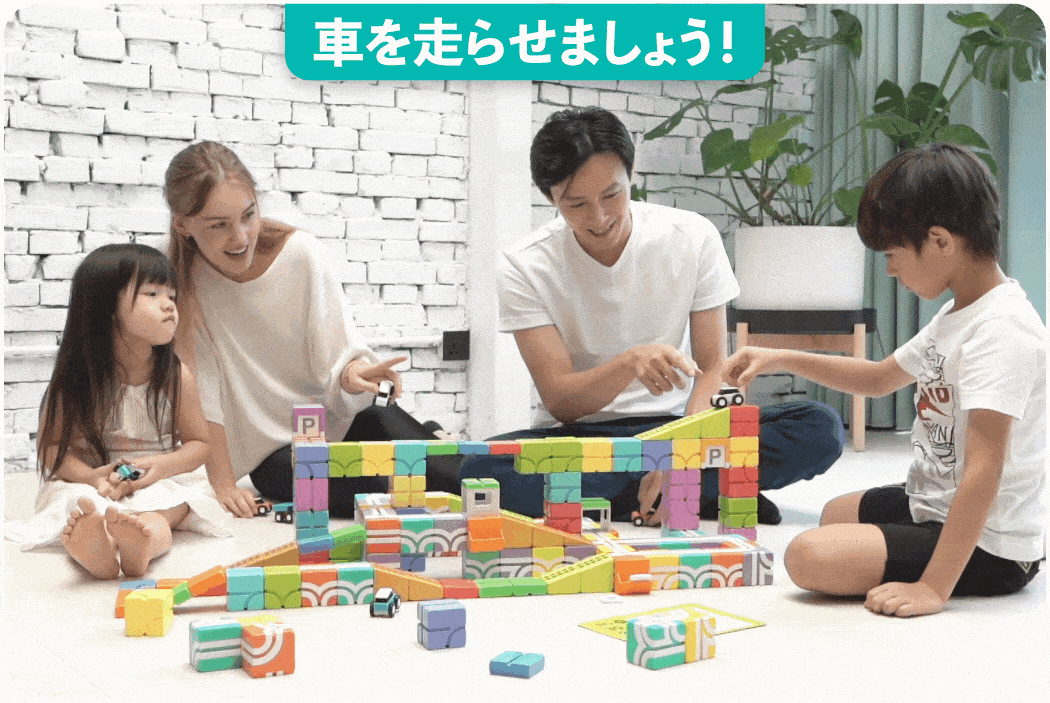 パパママと一緒に試行錯誤しながら遊ぶことで、コミュニケーション力がUPします。親子や友達で協力して、アイデアを出し合って工夫しながらレイアウトを作ることで、コミュニケーション力も自然と身につきます。