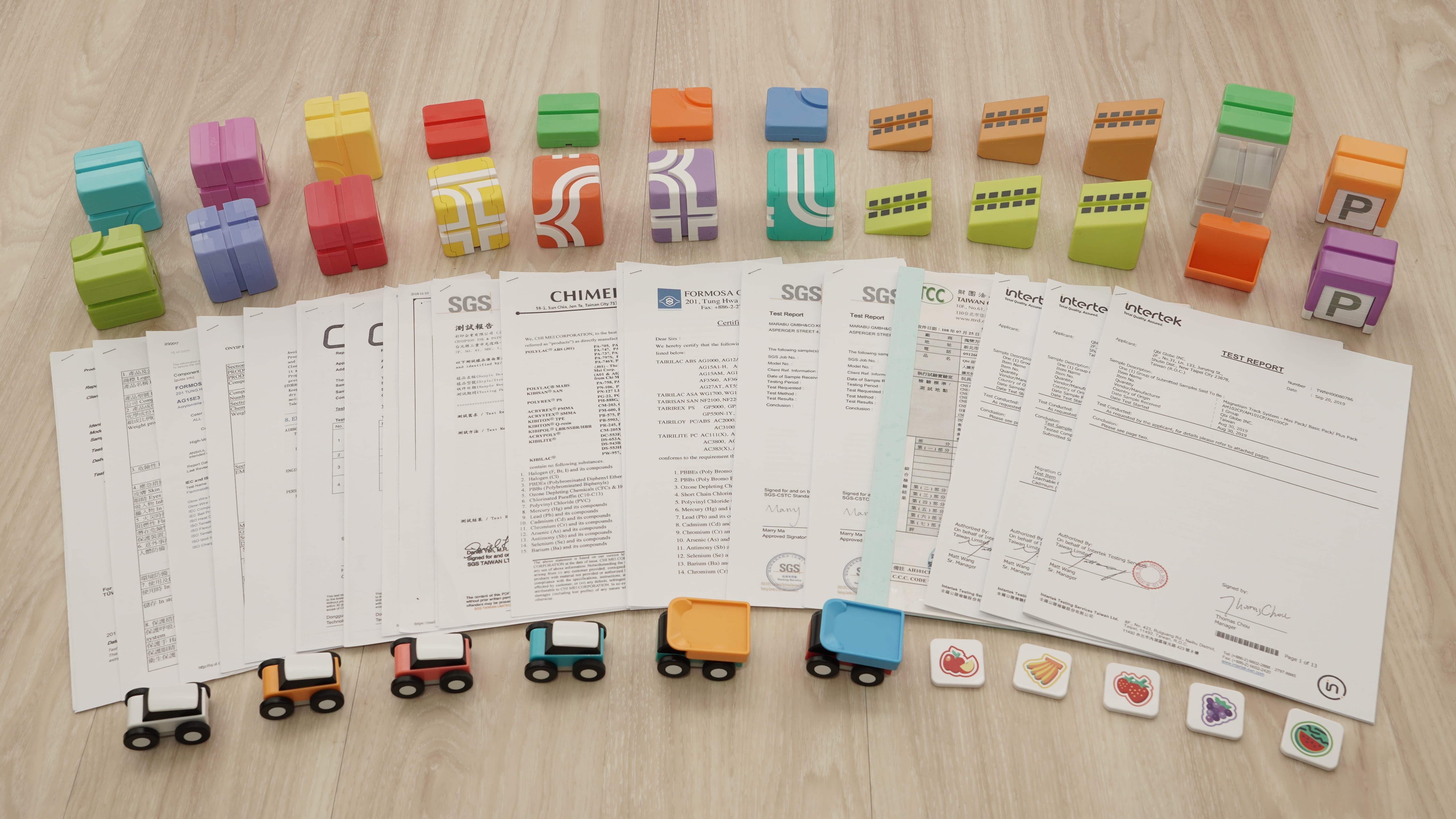 Qbi Toyのデザインから製造までのすべて台湾で行われています。おもちゃに使われている素材や形状は認証企業SGSより、玩具の安全性基準を満たしてると評価されています。(アメリカとEUの子ども向け)更に、第一弾は日本市場向けにST認証を取得しました。第二弾は日本の食品衛生安全法に基づく検査を通過し、日本向けにST認証を取得中です。 大切なお子さまに安全に遊んでいただける、安全度の高い商品となっています。
