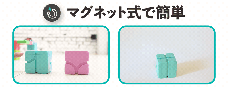 ブロックには磁石が内蔵しているため、組み合わせや取り外しも簡単。どの面同士も、自由にくっつけてレールを組み立てることができます!
