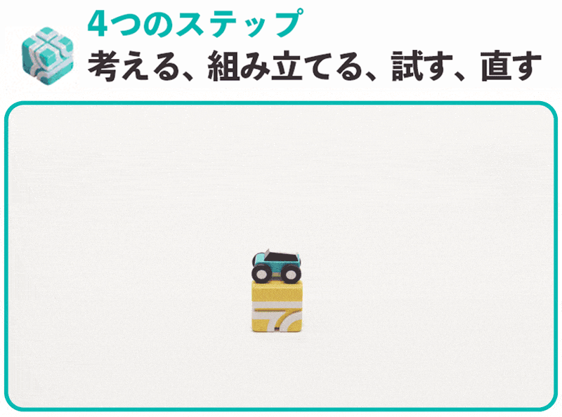 自分だけのコースを作り、自分の思った通りに車を走らせるにはどうしたらいいのか?を考えていくことで、考える力が鍛えられます!考える、組み立てる、試す、直すの4つのステップを通じて、プログラミング思考が自然と身につきます。