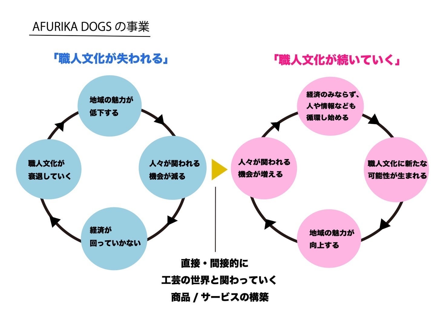 前職のバンカー時代、職人文化が失われると、その地域の魅力が低下し、人びとが訪れたり関わっていくことが減って、経済が回っていかず、生活が続いていかない状況の一端を垣間見ました。そこでこのプロジェクトでは、これまであまり工芸とは関わりのなかった人たちに届けていくことを念頭に、域内活動を活性化させ、職人文化が続いていく状態をめざします。