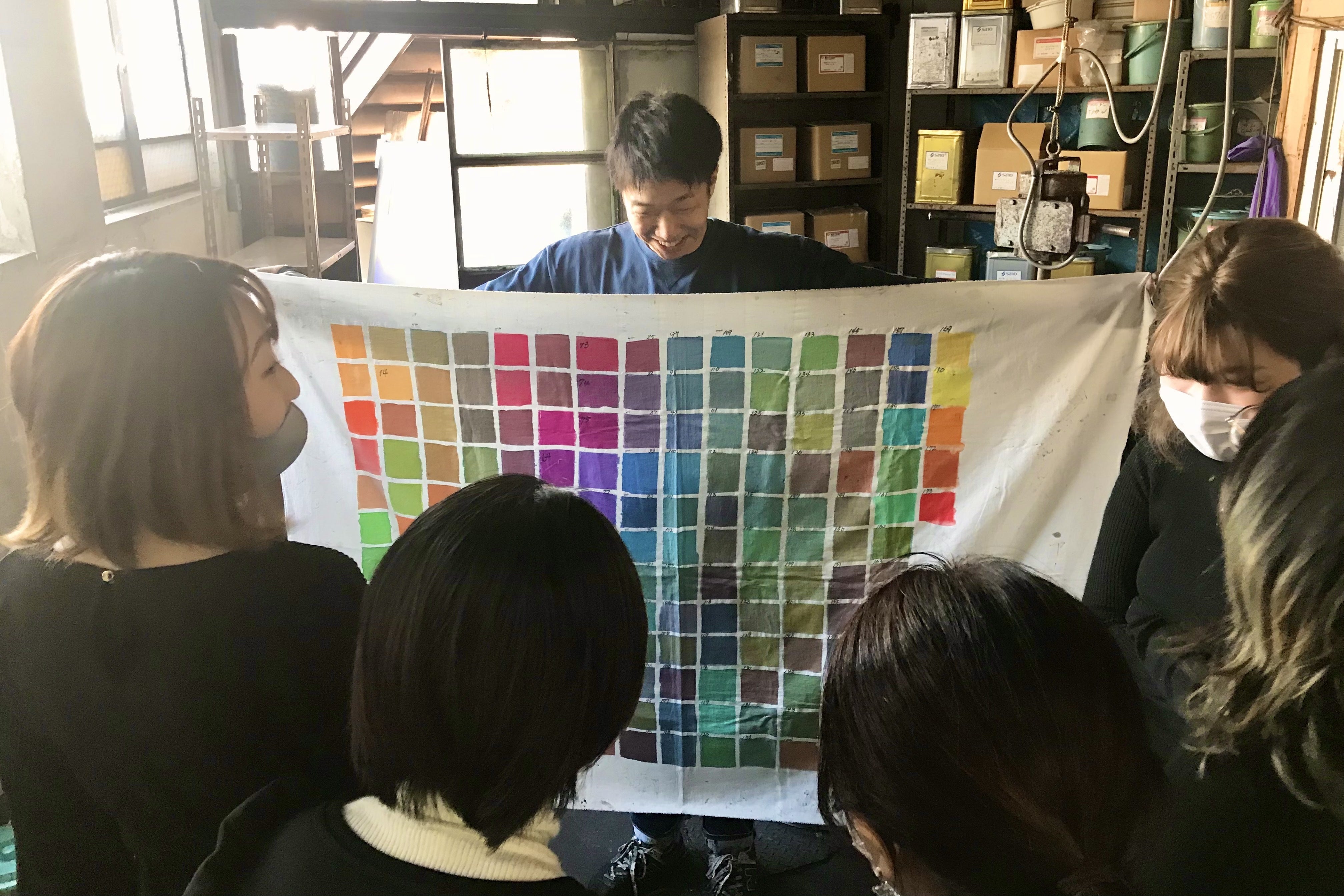 京都を代表する染色家・西田さんが主宰する染め工房「アートユニ」。そこでしか表現できない手描き友禅のウール地でジャケットをお仕立てします。