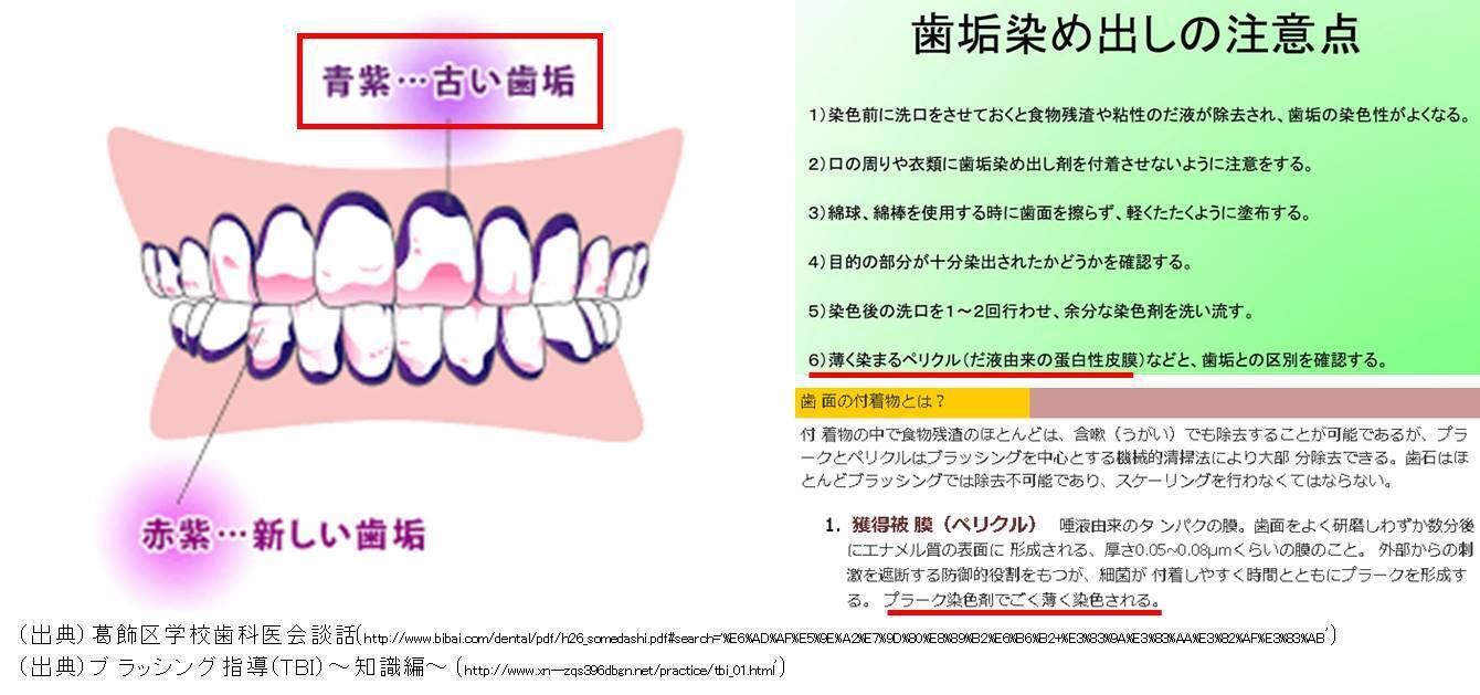 食物残差(食べかす)やだ液由来のたんぱく質を識別することができなく、成熟した歯垢(プラーク)が可視化できます。そのため、歯垢着色液(染め出し)を使われている方に対しては、食物残差やだ液に反応しないため違和感があるかもしれません。