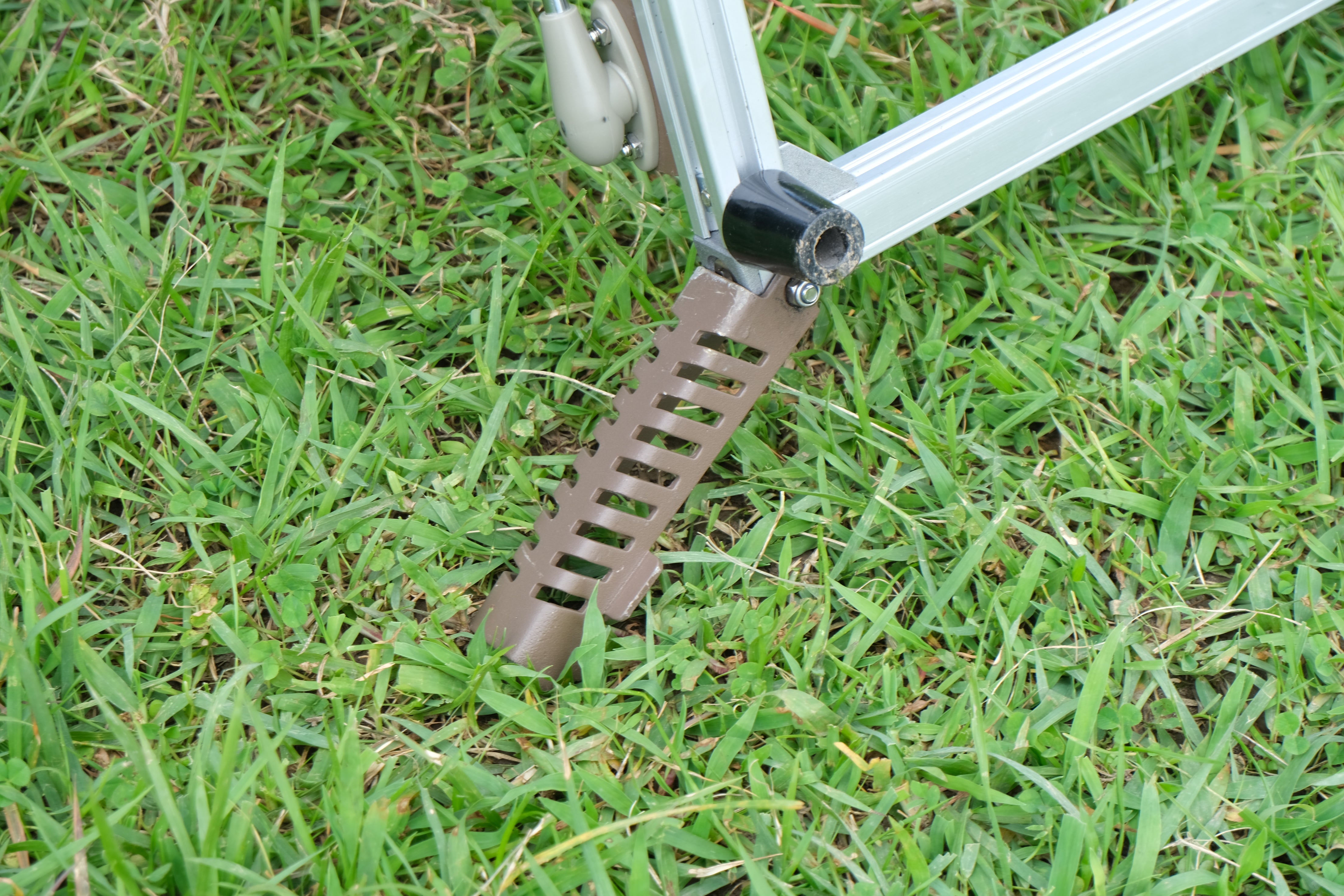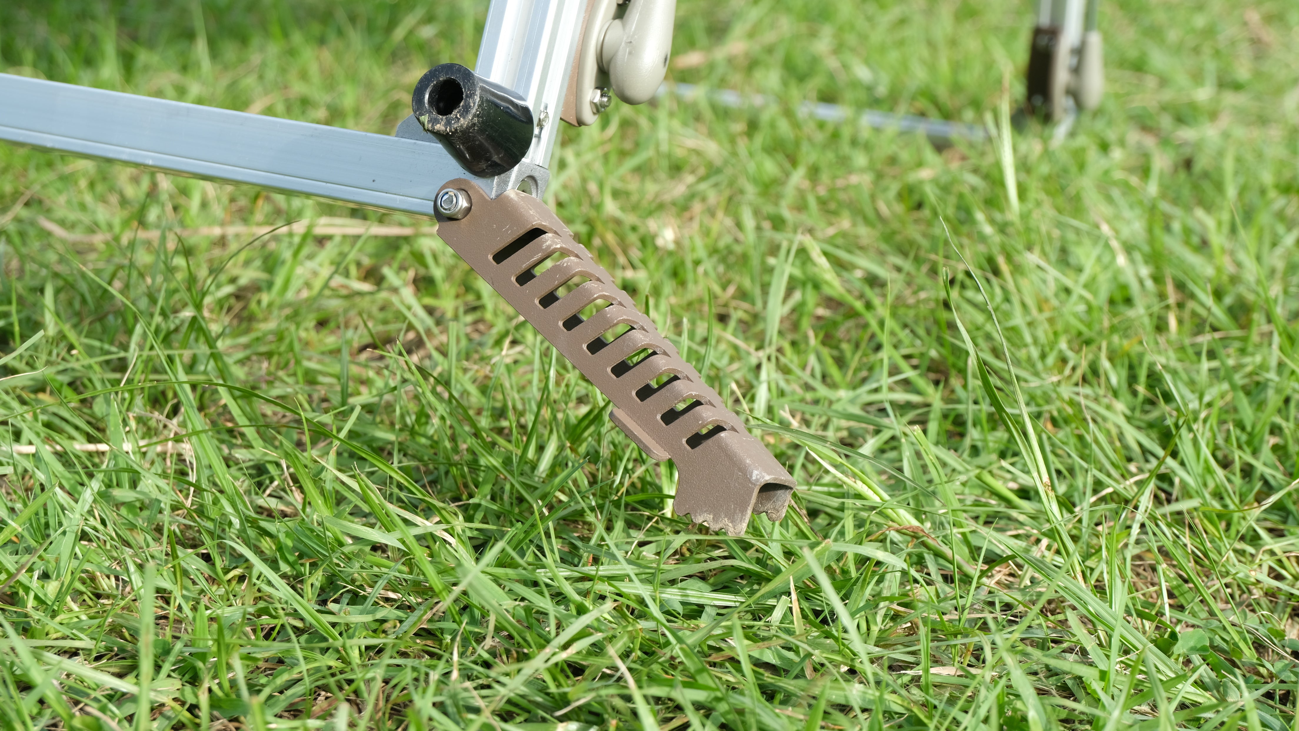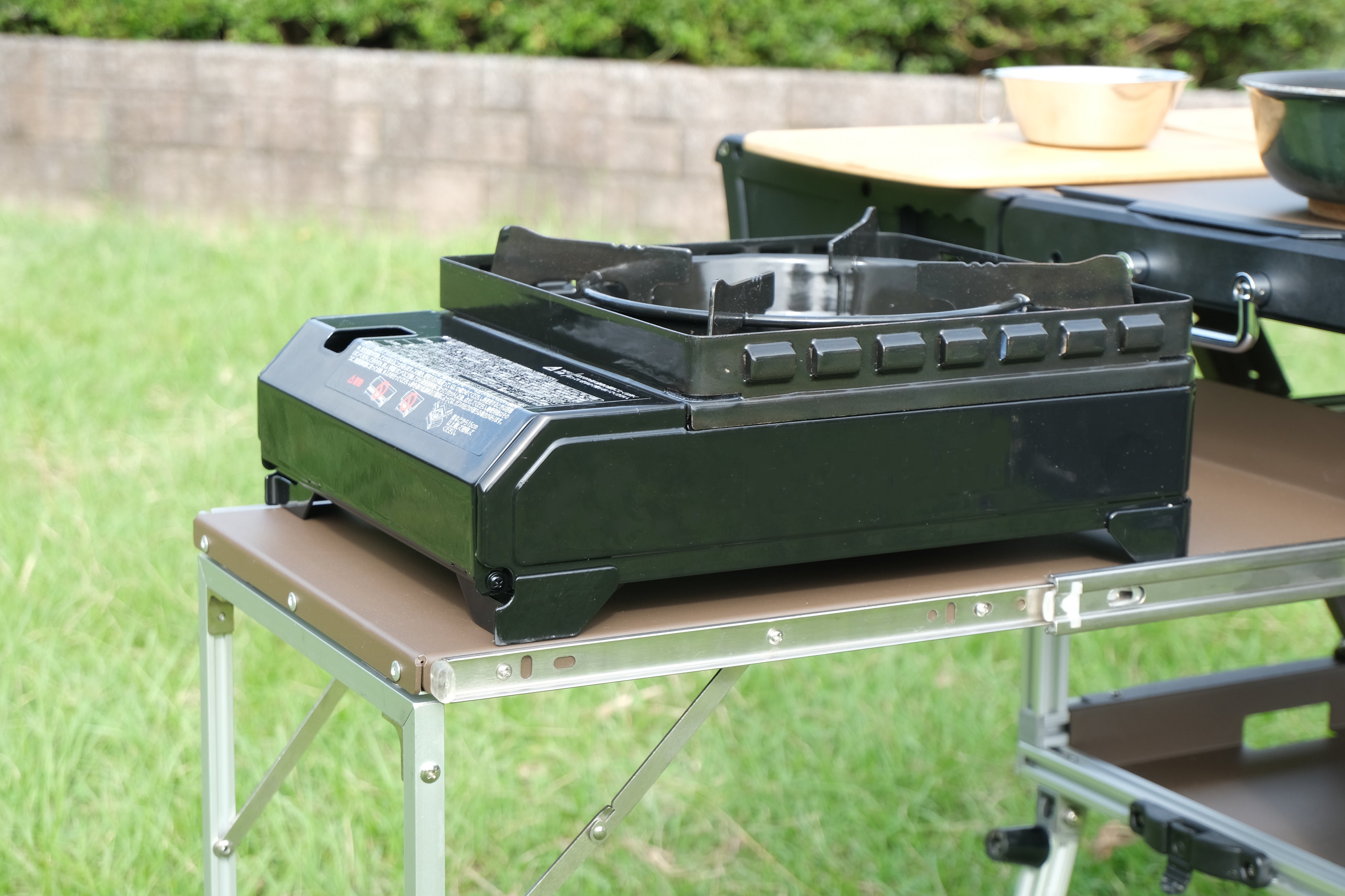 キャンプサイトによっては、砂利や芝生の地面で平面の物を置くと安定しません。
