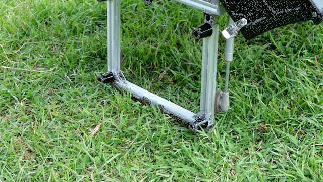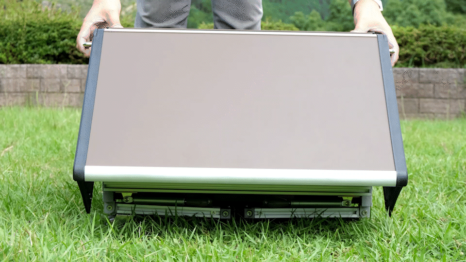 本体自重で抑え込まれた脚が持ち上げると同時にダンパーで動きが制され、早くもなく遅くもなく絶妙のスピードで広がります。