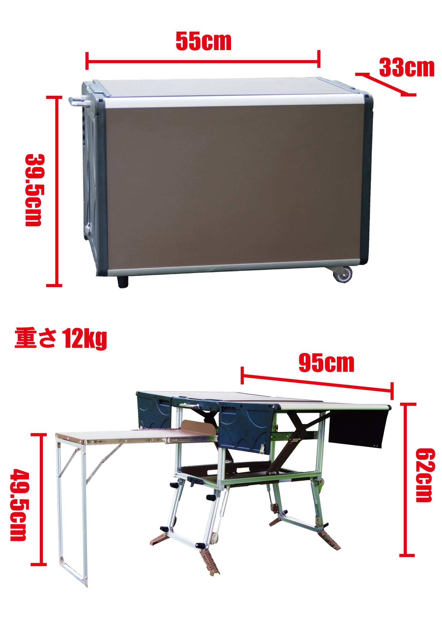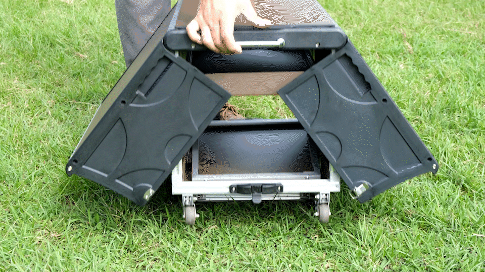 キャンプサイトは凹凸が多い地面が多いのでキャスターの金属素材も強化したものを採用しております。
