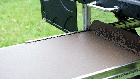 スライドテーブルも使い勝手を考え、ガスコンロを置いた際にちょうどよい高さにせっていされております。