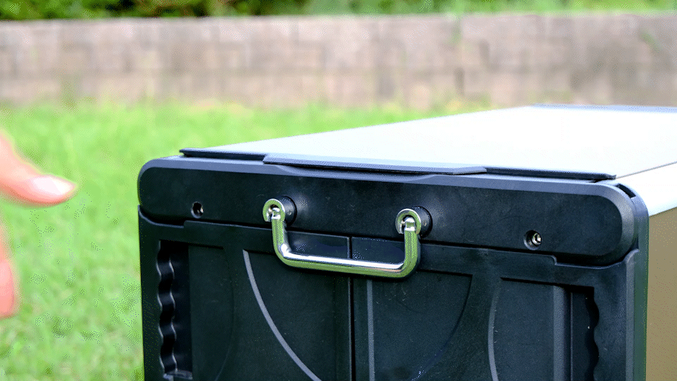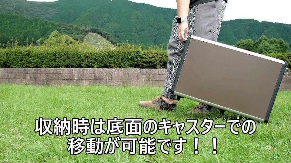 このように本体サイドのハンドルを持って地面を転がして運ぶことができます!!