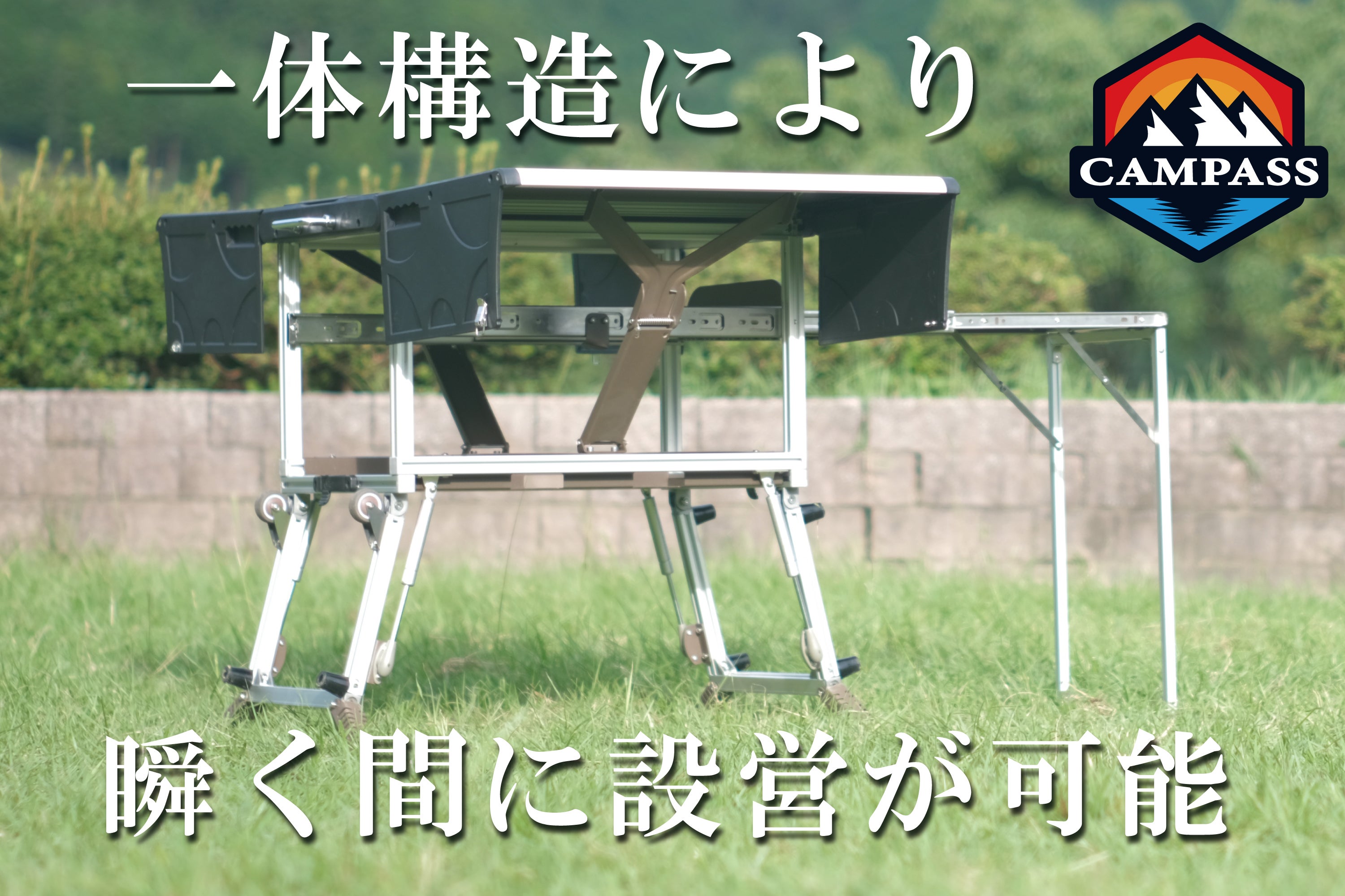 製品の話に戻りますが、この「フォーブル」をお使いいただくことで設営時間の効率化、一体化構造でかつ収納もできるので省スペース化を図れることは基より、キャンプギアとして扱うことのワクワク感、満足感が得られると考えます。