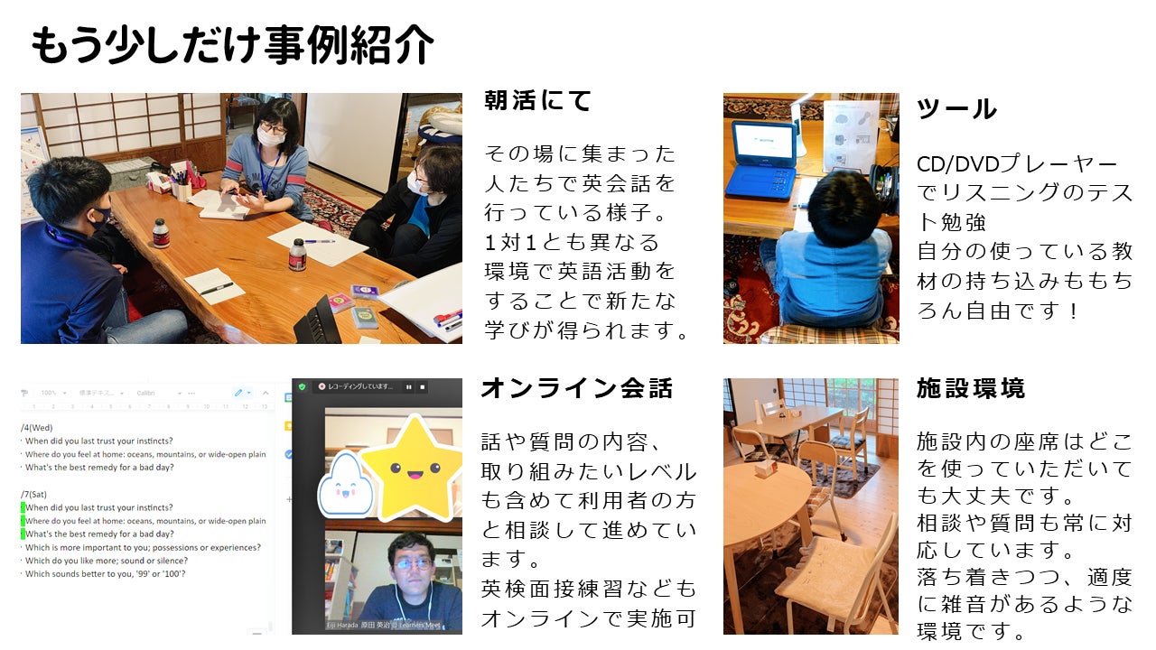 ・英会話活動、その他英語関係の学習補助、英語スピーチ & 面接練習
