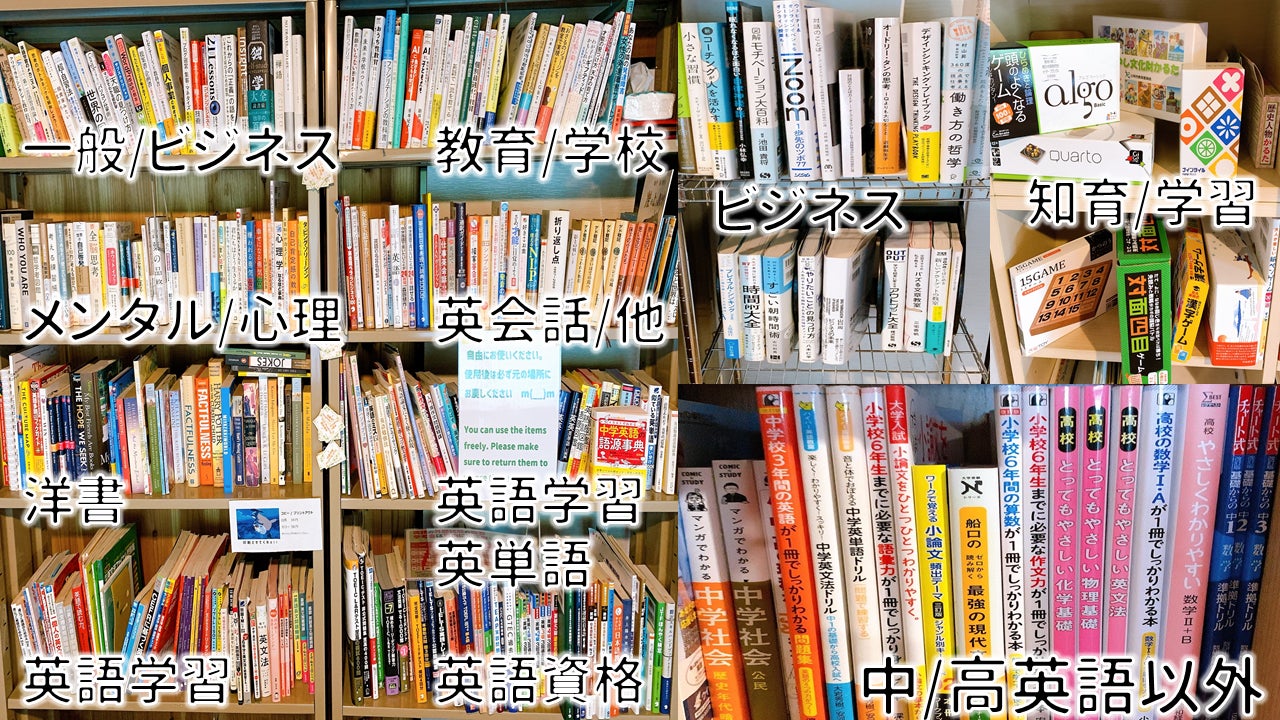 置いてある書籍や学習ツールの一部Learners Meetでは、置いてある書籍や参考書なども自由に使い、学習スペースとしても利用していただけます。また、個々の利用者が”学習面の何において悩んでいるか”を聞き、その解決のためにどういう方法が取りうるか、どんな教材/書籍が助けになるかを提案しています。学習面、生活面における自分の特性の自己分析をしていくことで、