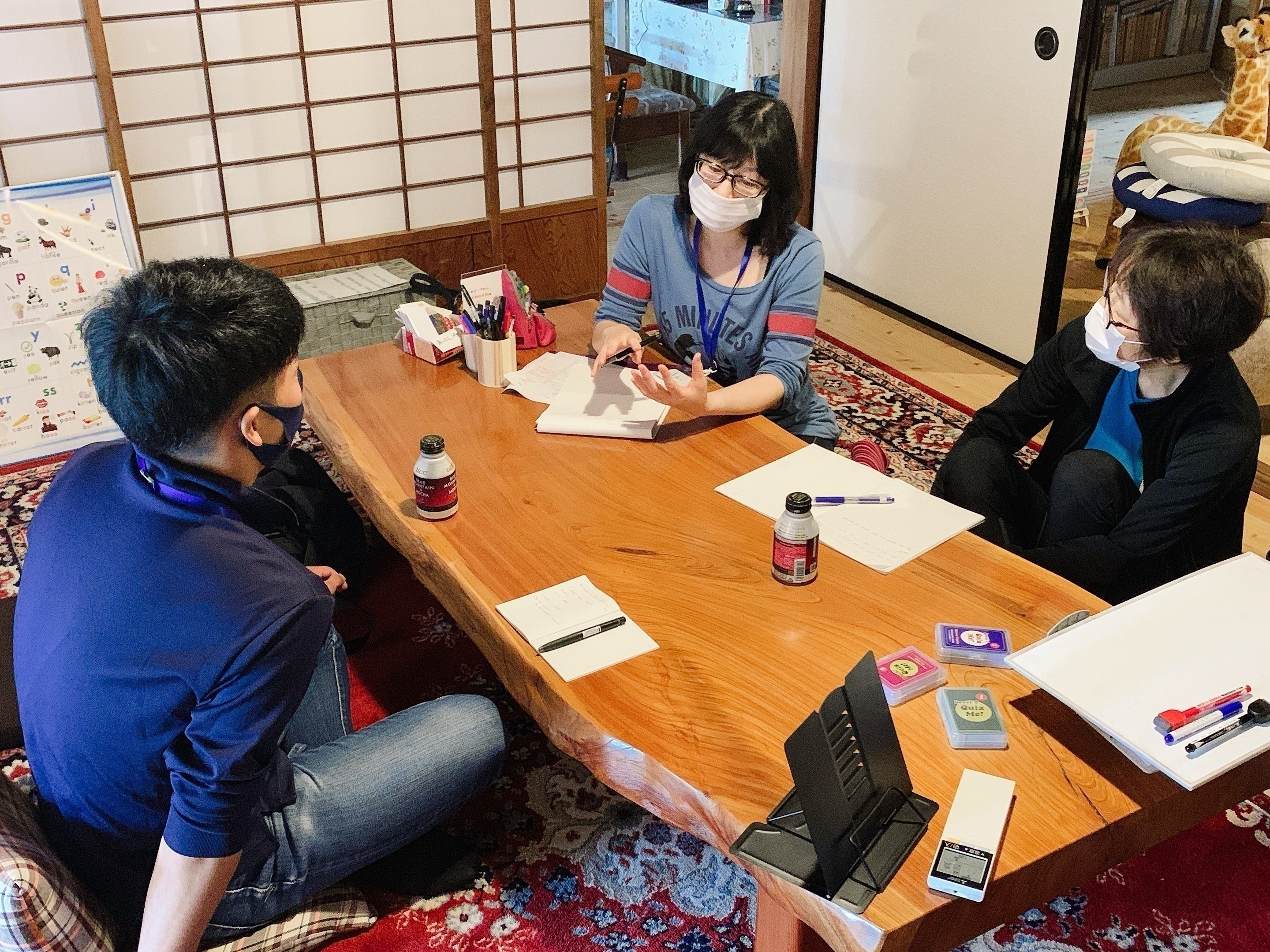 親子で来て、お母さんは別室でご自身の資格試験の勉強をしている間に、子どもは宿題→英語活動という利用もあれば、親子で一緒に活動するといったことも気軽に行っていただけるようにしています。