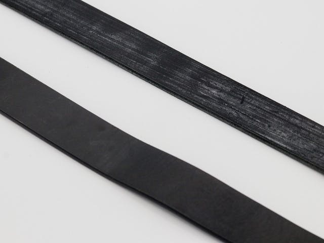 その為、適度なしなやかさを持ち、コバの断面を磨きのみで仕上げる事が可能となります。