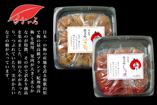梅干の原料である梅は、不作が続き現在価格が高騰しております。大容量パックなども内容量を調整されたためグラム数も少なくなったりしております。今回の商品は、粒が不揃いだったり、つぶれたものがあったり、実のかたさにばらつきなどがありますが、味は一級品の商品です。今回400g入ですので、必ず満足していただけると思います。私たちも企画を進めるうえで試食をさせていただきましたが、さすが紀州産の南高梅!味は一級品でした。