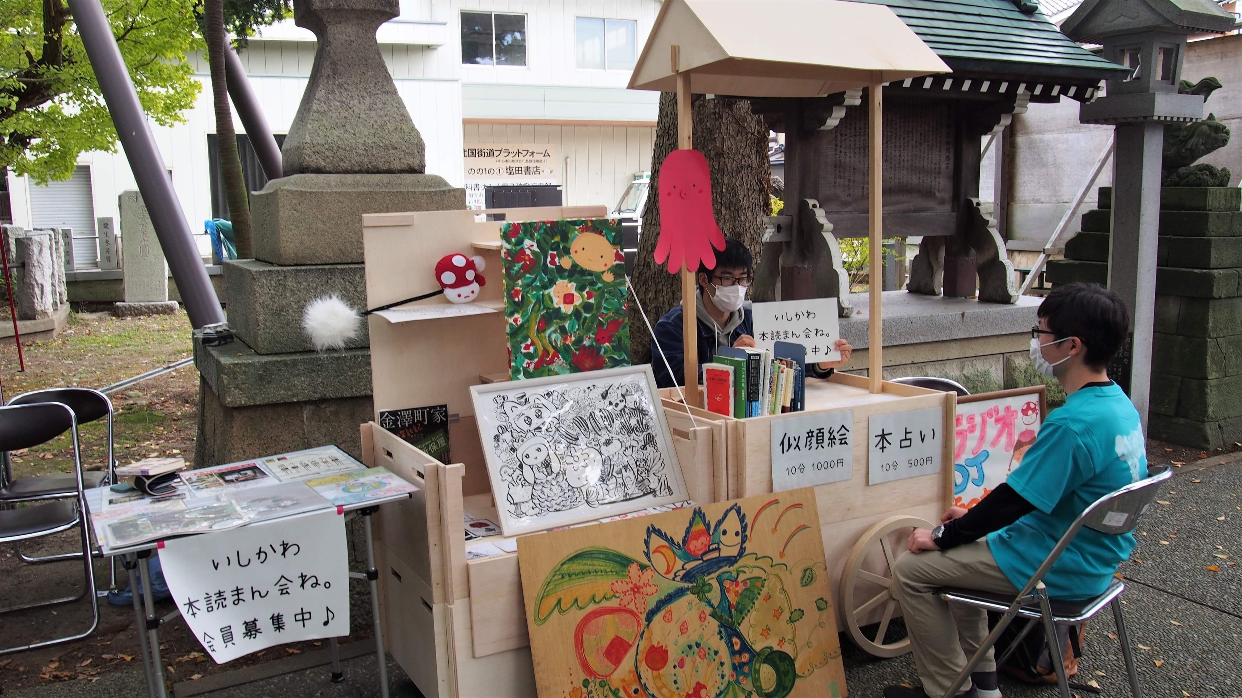 布市神社のブースでは、仲良しフリーマーケットという枠組みで、思い思いの出し物を展開しました。
