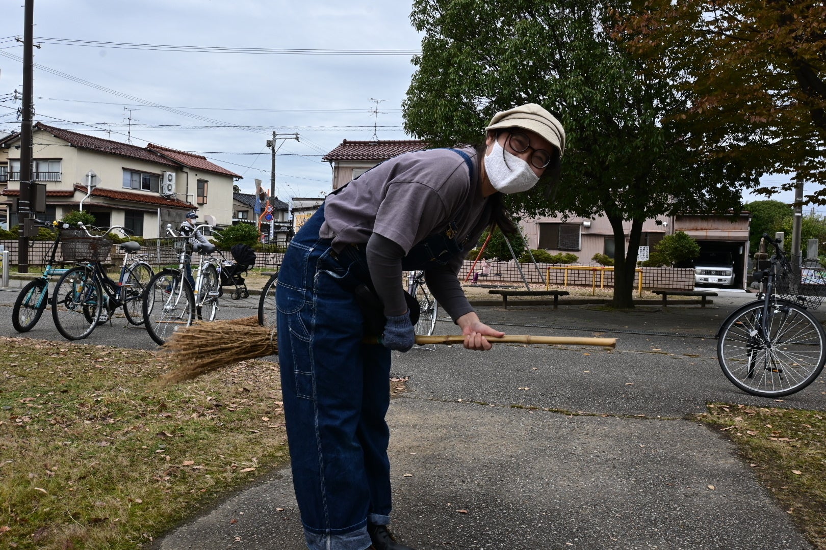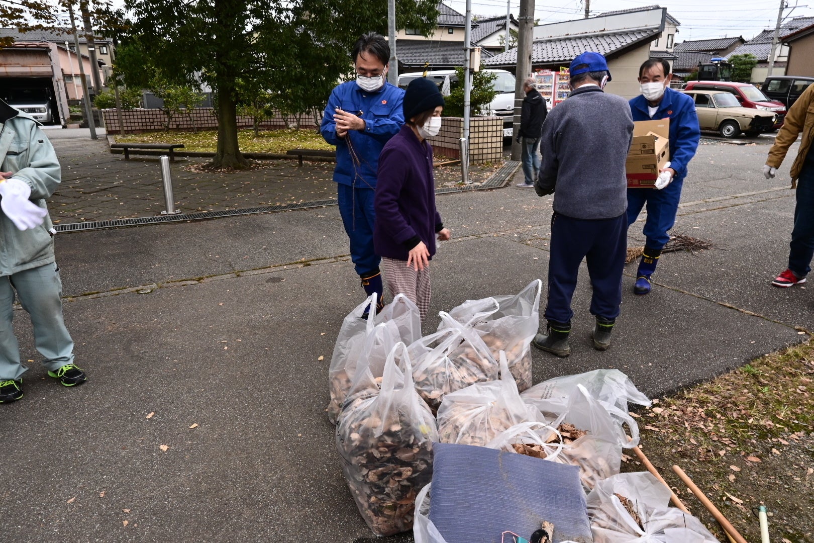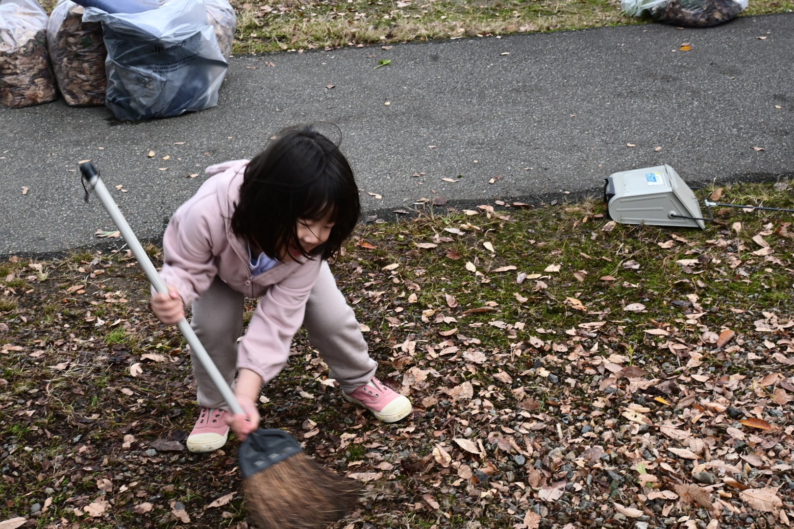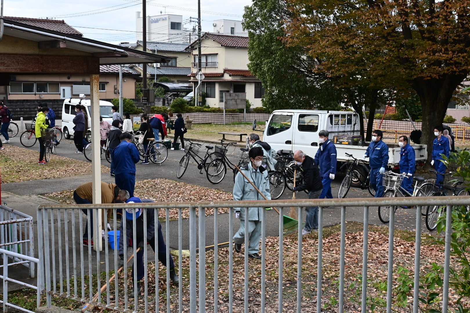 落ち葉をみんなで掃き掃除しました。皆さん、手慣れていてあっという間に綺麗になりました。
