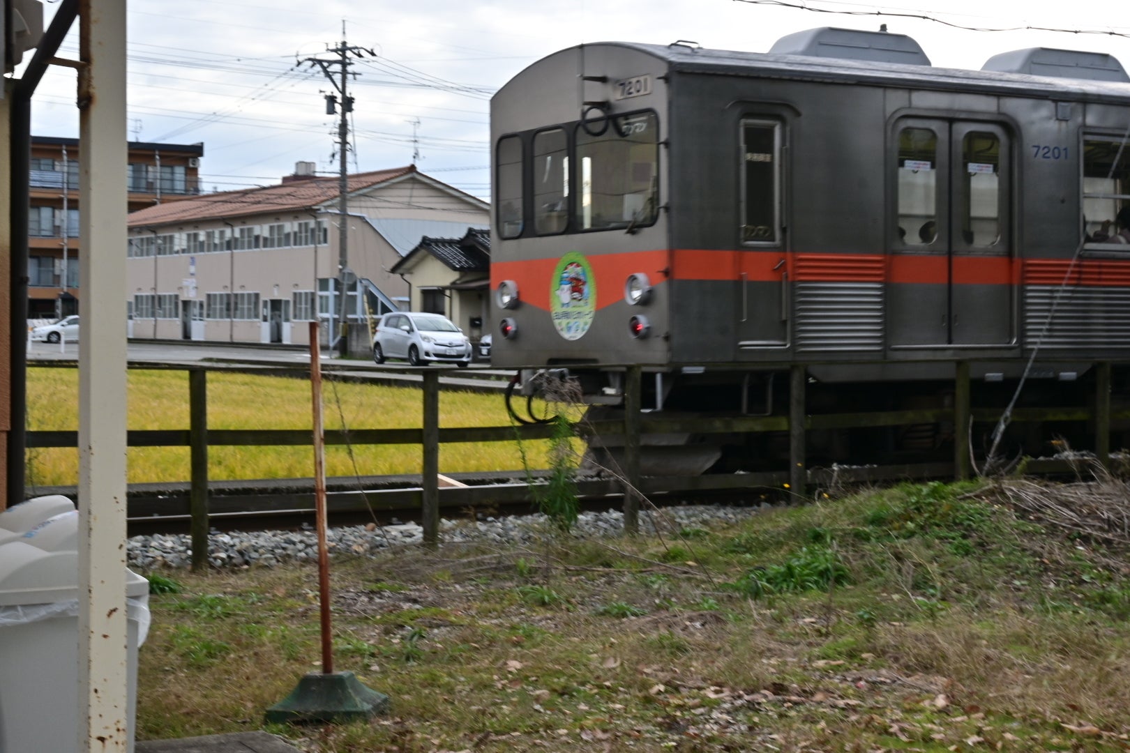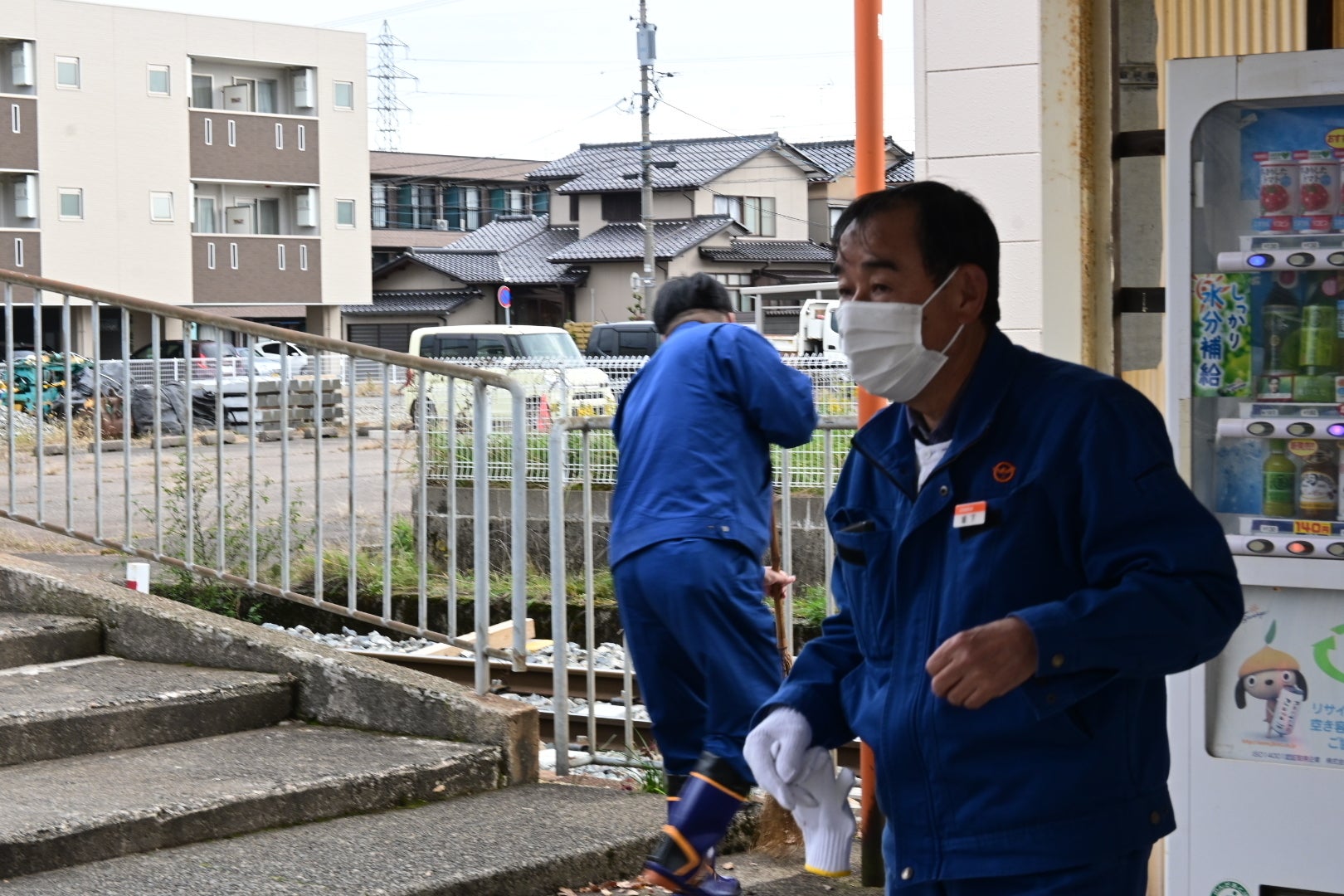 電車が来ると、工業大学の学生さんたちは鶴来駅の清掃へ移動。