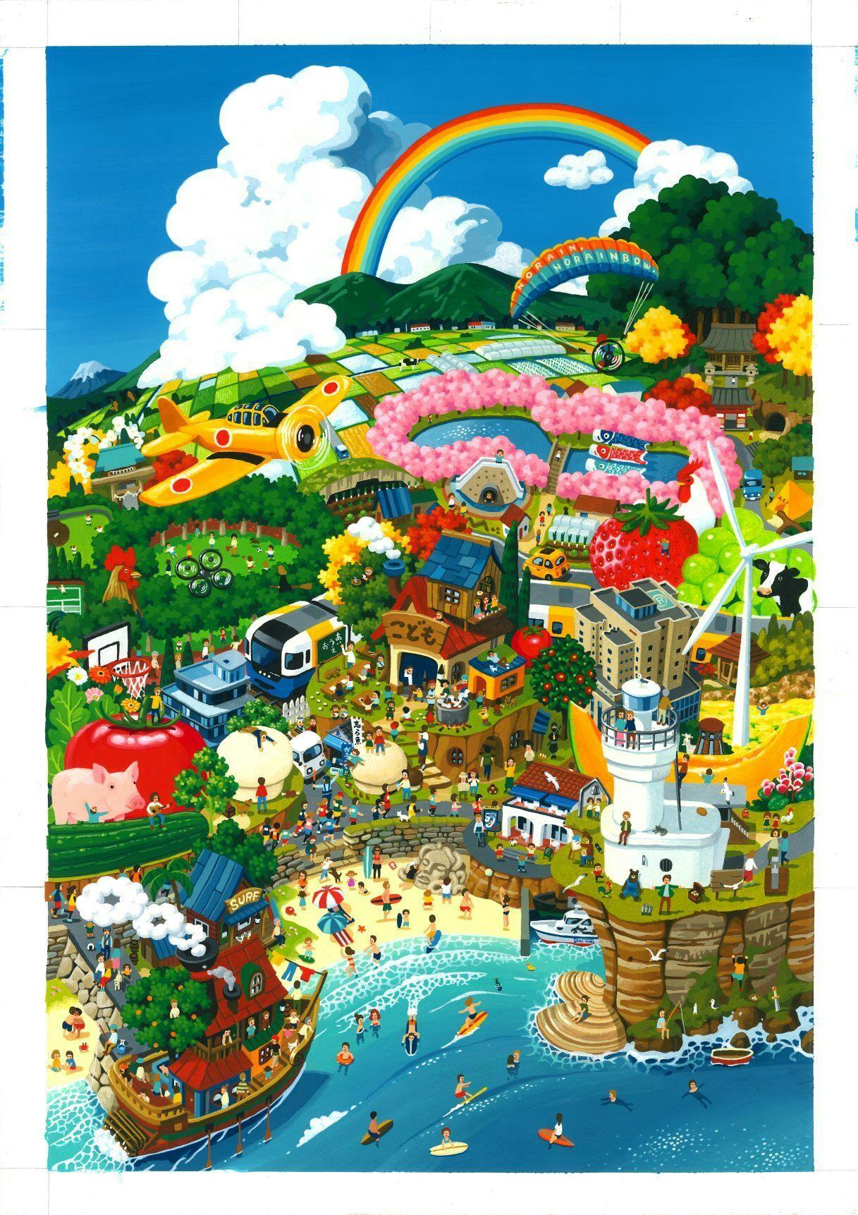 夢と希望があふれるまち「旭」が緻密なタッチで細部にまで表現されています。