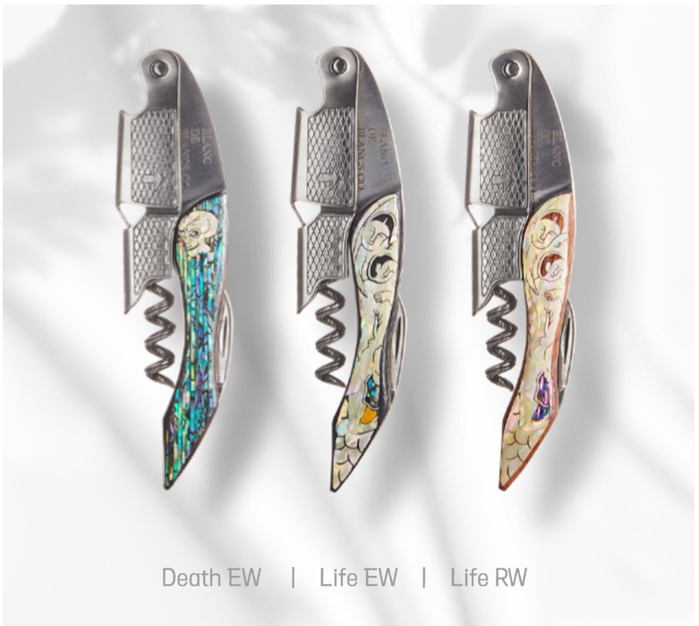 Deathは闇のイメージに合わせて黒檀素材のみで製作され、Lifeは黒檀とバラ目素材の選択が可能です。