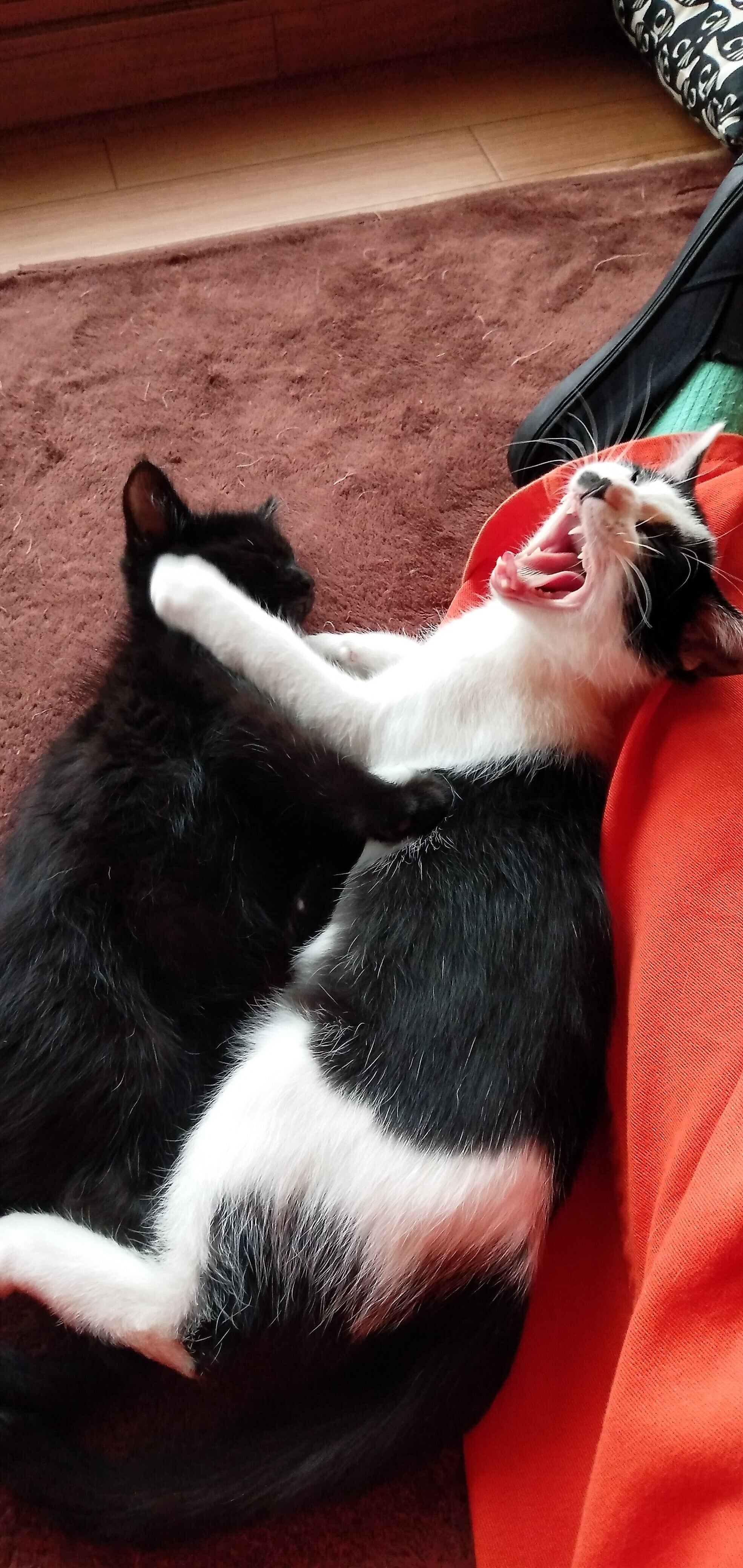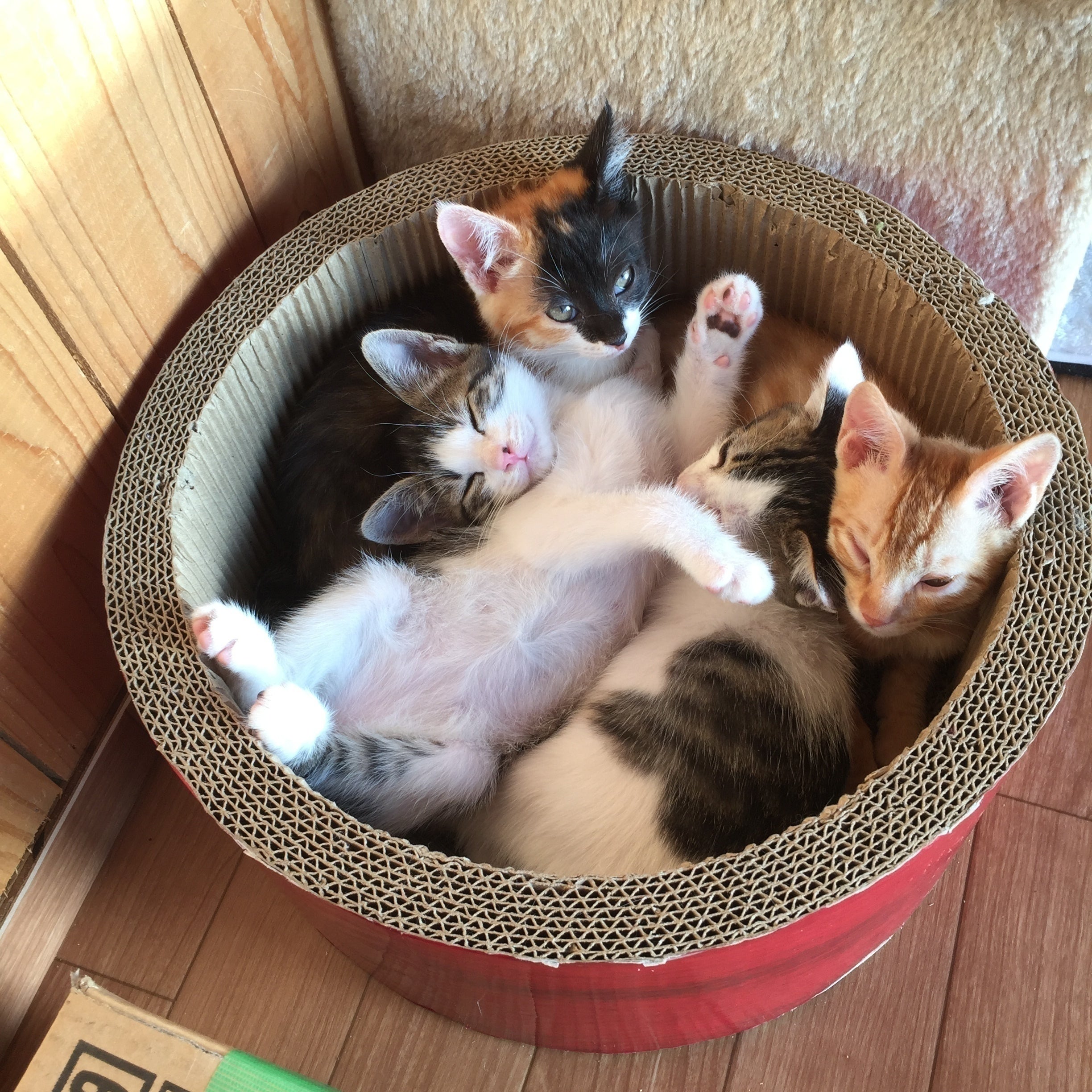 2021/11/15 17:45こんにちは!神戸アニマルリンクです。プロジェクトも残り3日となり、現時点で100名近くの皆様よりご支援頂きましたこと、深く感謝致します。一匹でも多くの猫を助けたいとご支援くださった皆様の思いに、今後の活動を続ける事で応えて参ります。ありがとうございます。さて本日は、黒猫マンボを里親さんの元にお届けしました。現在猫部屋には今期で一番長く滞在したキジトラのナナミと白黒のイツキが、明日の出発を控えている状態です。こちらの動画は数日前に撮影したもので、ナナミイツキと、黒猫兄弟サンボ(ふわふわの方)とマンボの4匹がうつっています!ナナミとイツキが2匹だけで部屋にいる時に、サンボとマンボが入所してきました。サンボマンボはびっくりするくらい人にも猫にもフレンドリーで、着いてすぐに馴染んでくれたのですが、ナナミイツキがシャーシャーと怒っていました。とは言え攻撃をする様子も無かったので、部屋を分ける事はせず見守った数日で、ナナミとイツキに変化がありました!まず、合流して3~4日目までは徐々に減りつつもシャー!と言ったいたのが、完全に受け入れたあとには、仲良く集まって寝たりするようになりました。そして、元々抱っこでじっとはしてくれない猫らしい猫だったナナミとイツキが、甘えん坊のサンボとマンボの様子をみて、人間への接し方を変えていったのです!!眠たくなったらゴロゴロのどを鳴らして近寄ってきたり、お膝の上で寝たり、毛づくろってくれたり。これは2匹がサンボマンボに出会わなければ絶対にこうはならなかった!と断言出来る変化です。猫たちにとっては将来、一緒に過ごした事なんて忘れてしまうほどの短い時間を共有しただけですが、出会えた意味があったんだなぁと感動しました。すっかり人間大好きのかわいい姿はぜひ神戸アニマルリンクのインスタグラムでチェックしてみてくださいね! もっと見る