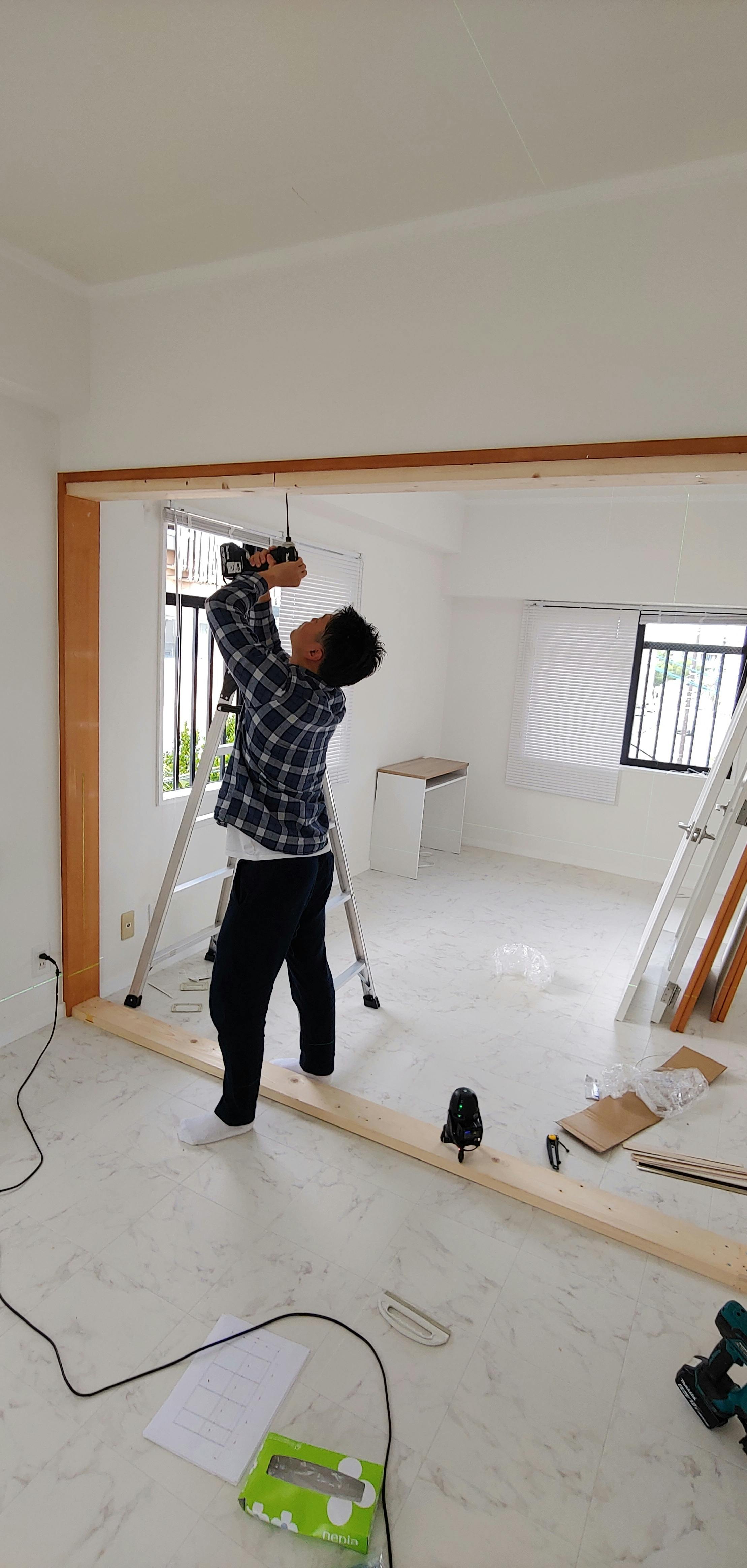 大工さんに頼めば早く終わるのですが資金のやりくり上、自分たちで DIY をして店舗を作ることとなりました(^_^;)