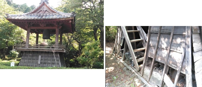 土台部分が長年の風雨で破壊され基礎も不安定な状態で、今は釣鐘を突くこともできず、このまま放置すれば崩れてもおかしくない状況で一刻も早く修復にかかりたいと思っています。